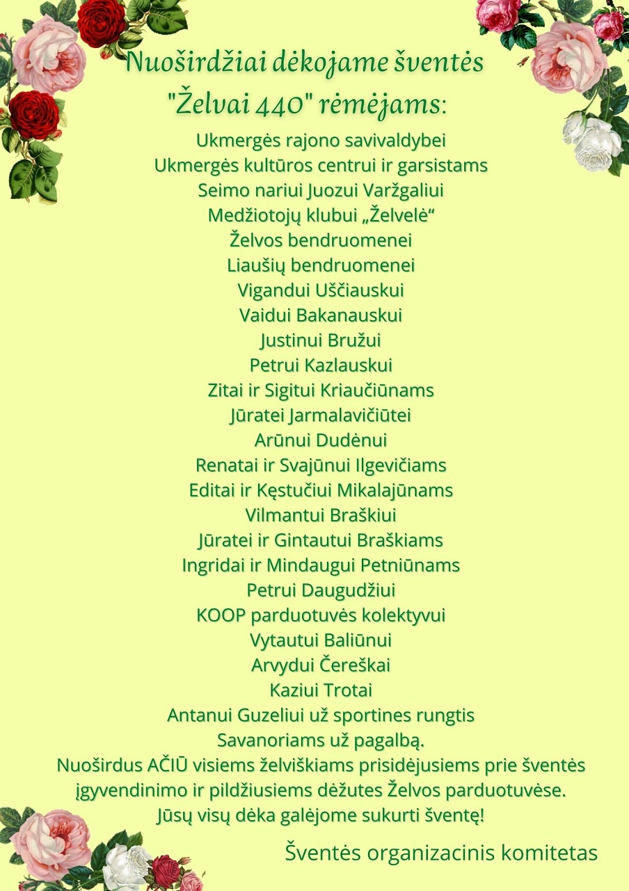 Šventę organizavo: organizacinis šventės komitetas – Želvos seniūnija, Želvos kultūros skyrius, Želvos bendruomenė.