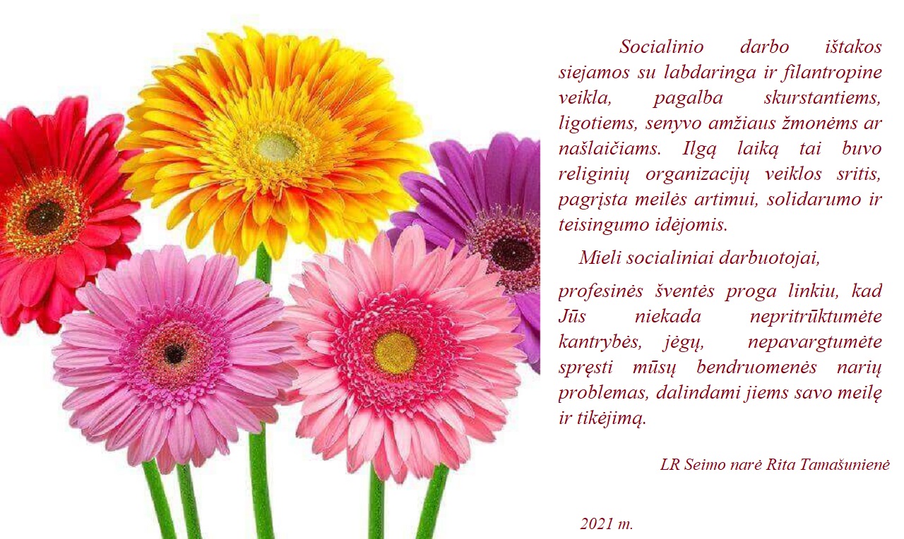 profesinės šventės proga linkiu, kad Jūs niekada nepritrūktumėte kantrybės, jėgų, nepavargtumėte spręsti mūsų bendruomenės narių problemas, dalindami jiems savo meilę ir tikėjimą.