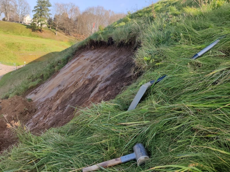 Į Kernavės piliakalnius, akylai prižiūrint Direkcijos archeologams, atvyko sunkioji technika Prasidėjo didžiausi šiemet vyksiantys Mindaugo sosto ir Lizdeikos kalno piliakalniuose įvykusių nuošliaužų likvidavimo darbai.