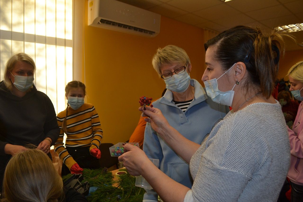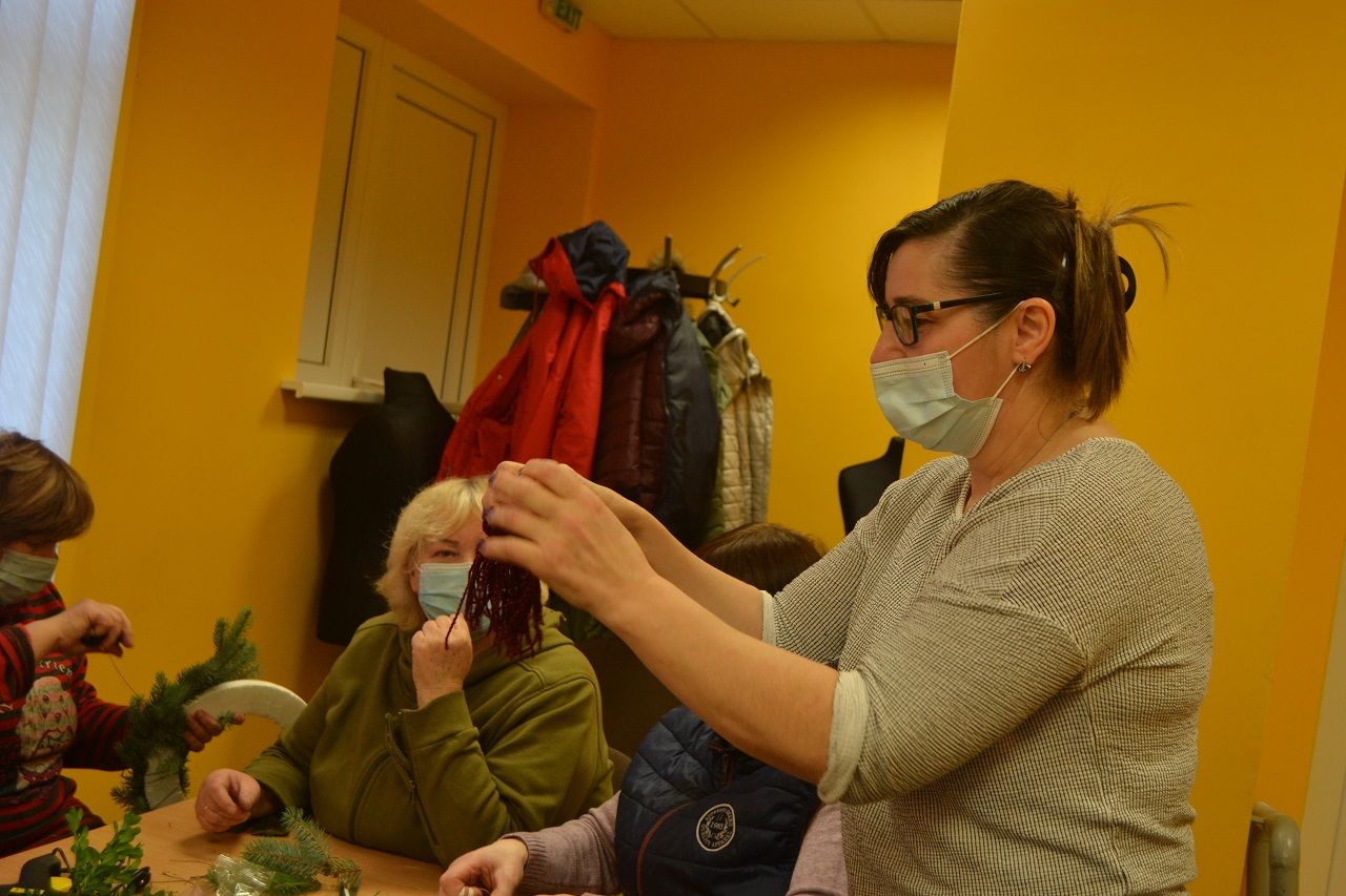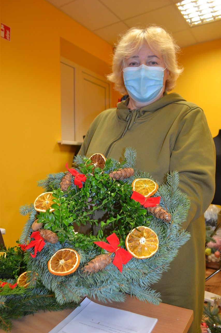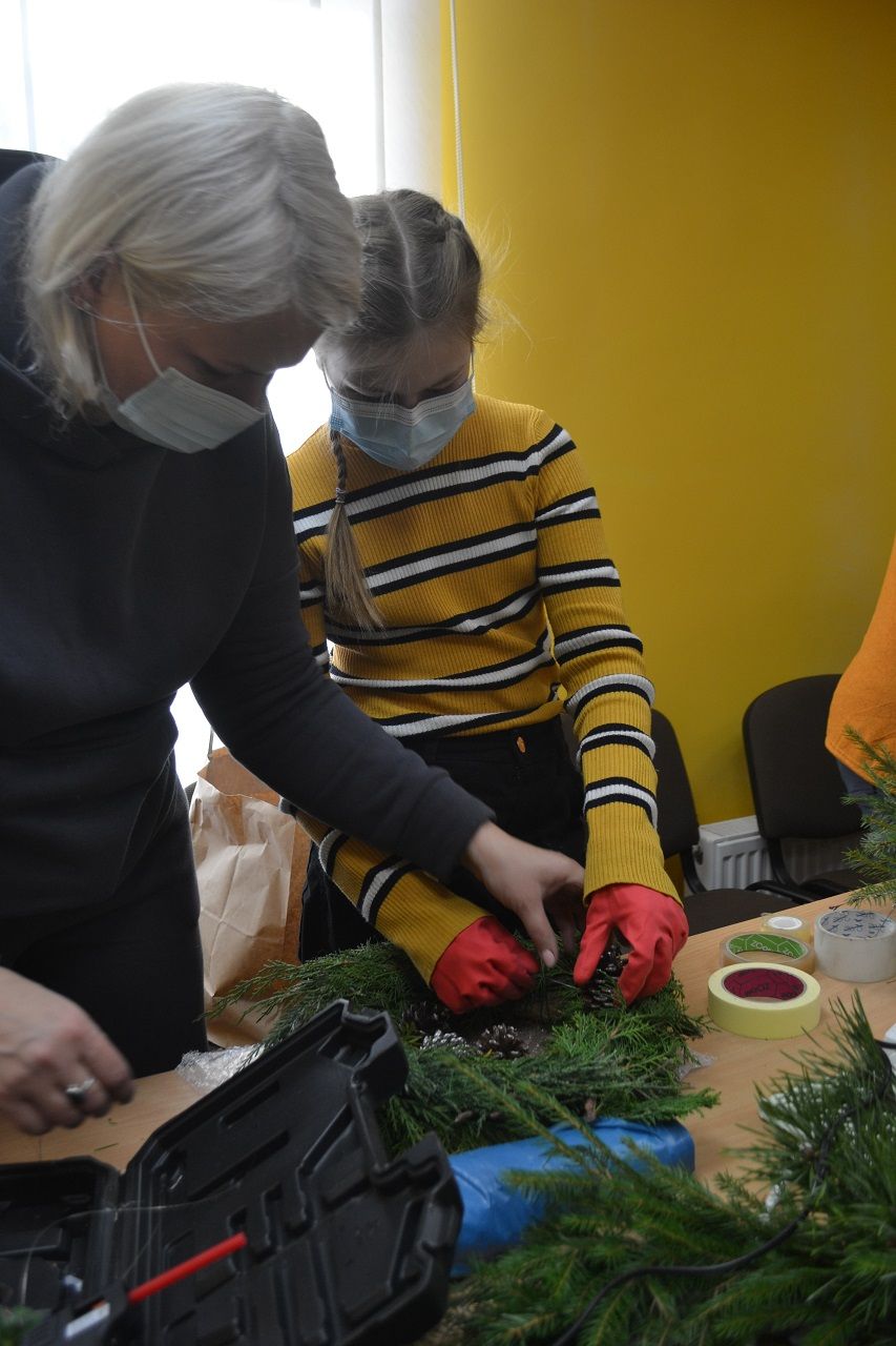 Edukatorė Jelena Masiukė mokė vainiko pynimo ir dekoravimo technikos. Ji pasakojo apie tokių vainikų atsiradimo istoriją, kaip ir kodėl jie buvo pinami, kuo puošiami.