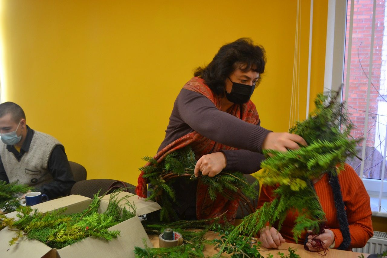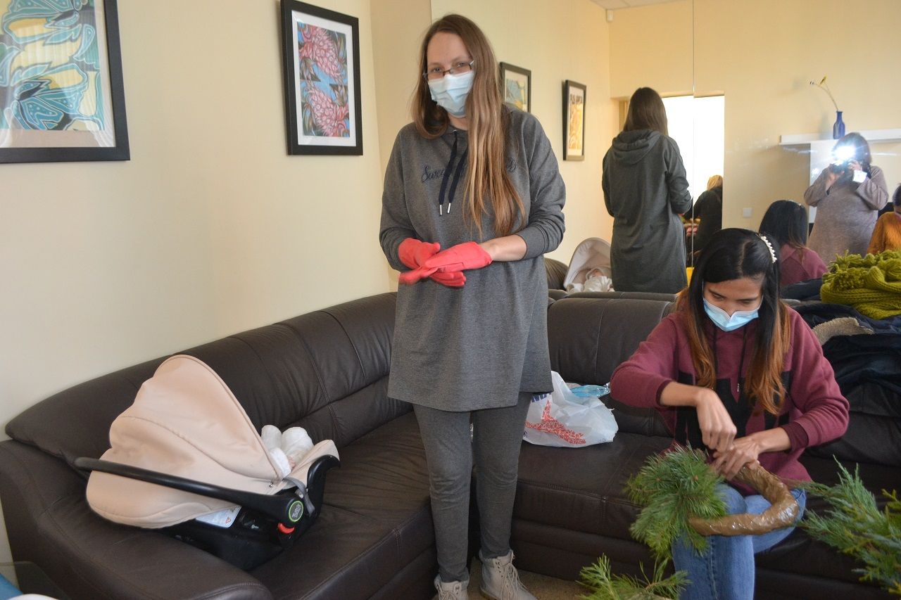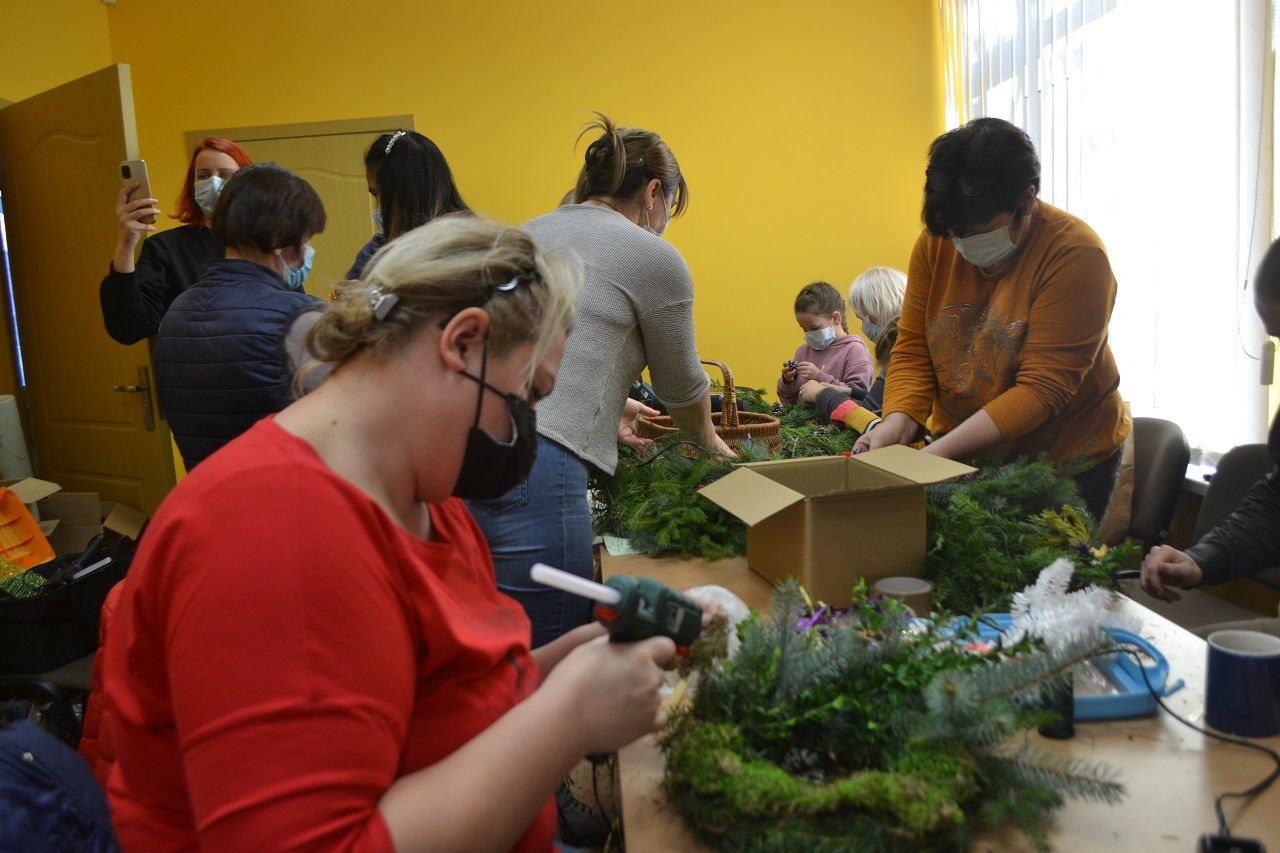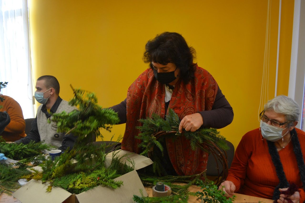 Edukatorė Jelena Masiukė mokė vainiko pynimo ir dekoravimo technikos. Ji pasakojo apie tokių vainikų atsiradimo istoriją, kaip ir kodėl jie buvo pinami, kuo puošiami.