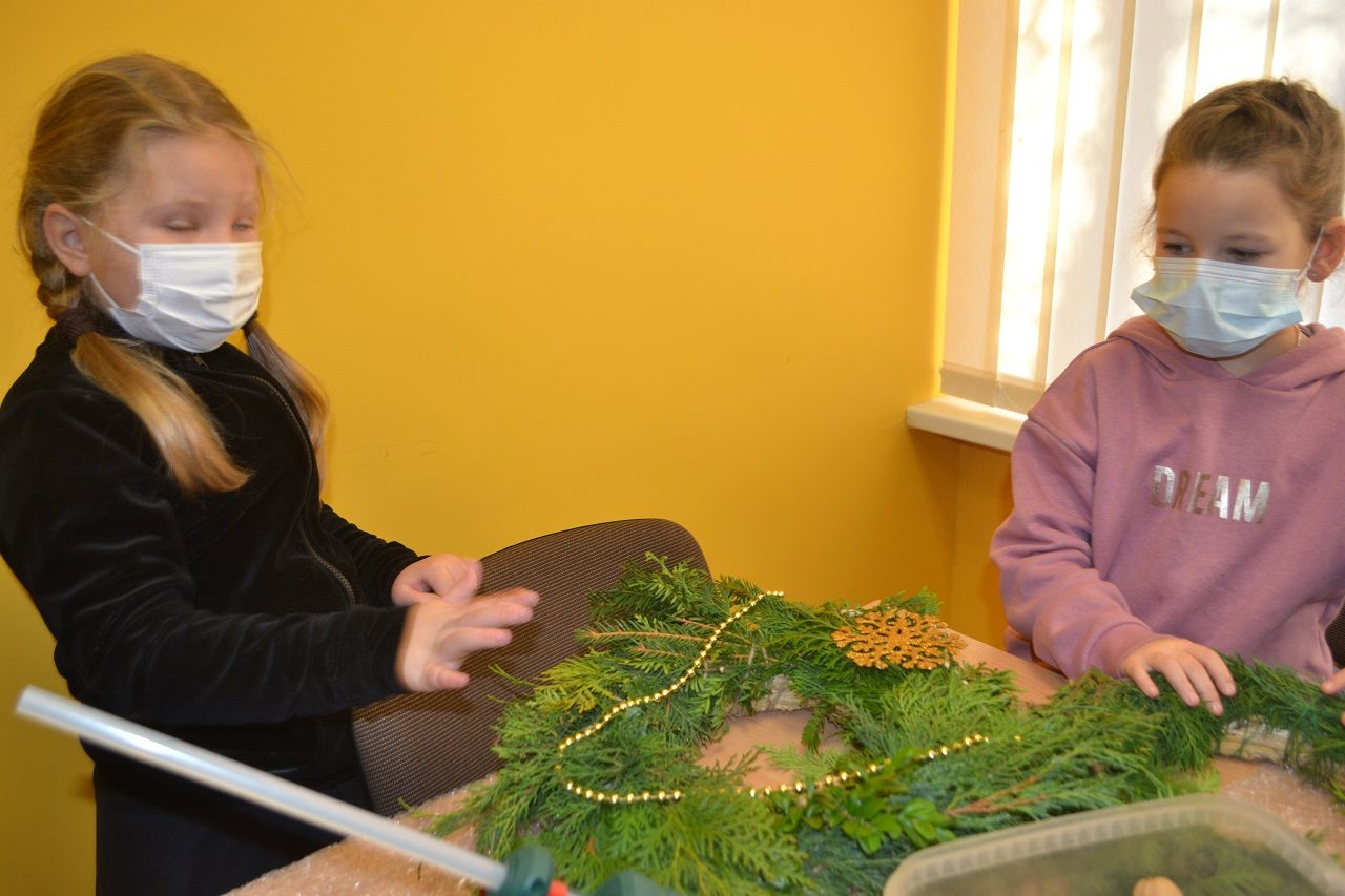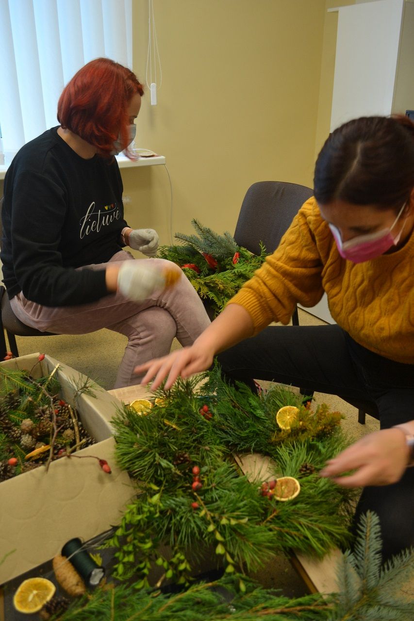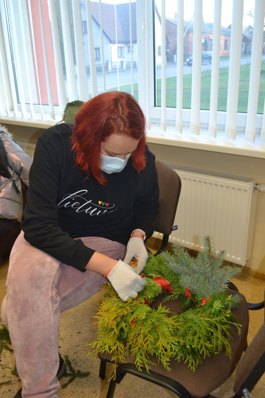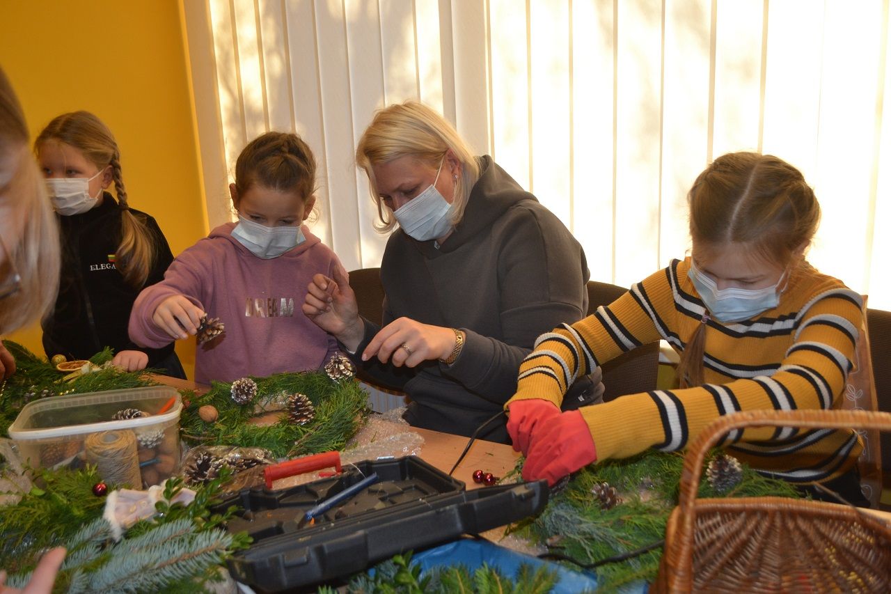 Ypatingai džiaugsmingai dirbo mažosios musninkietės. Megaitės pasakojo, ką puoš savo vainikais, kaip lauks Kalėdų senelio, kur paliks jam sausainių ir pieno.