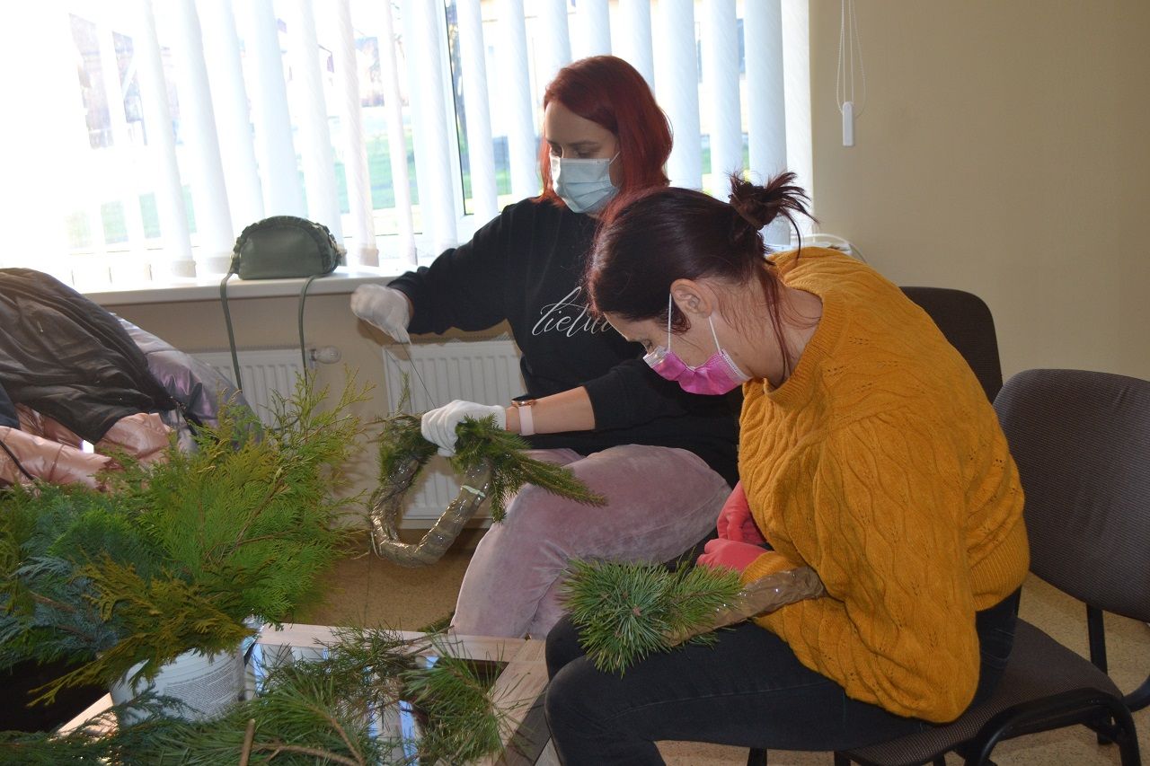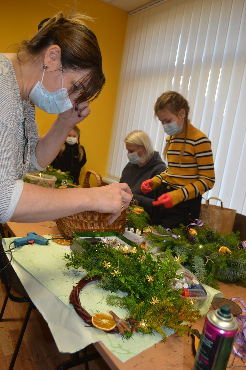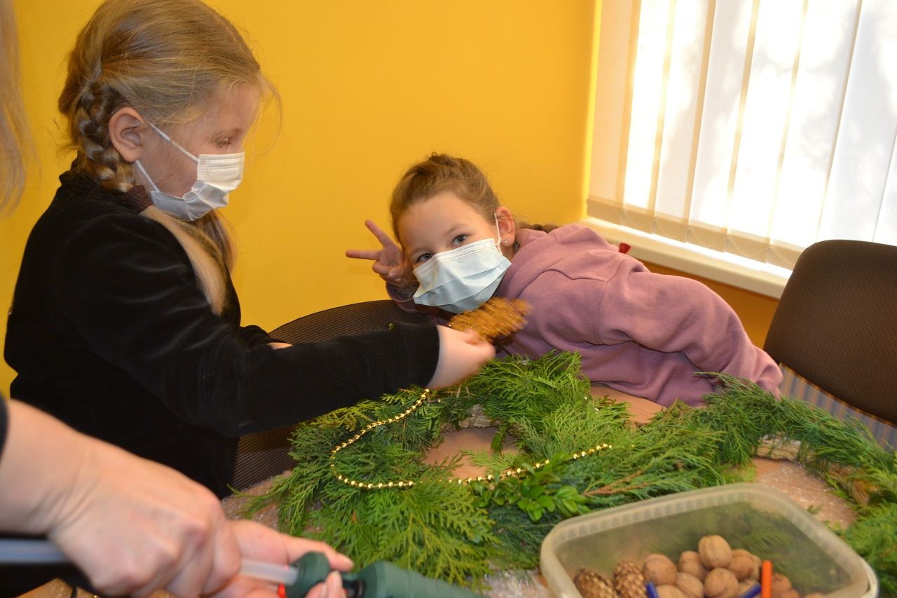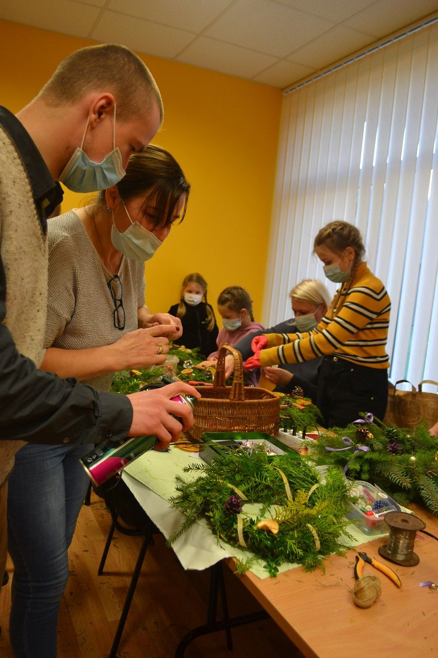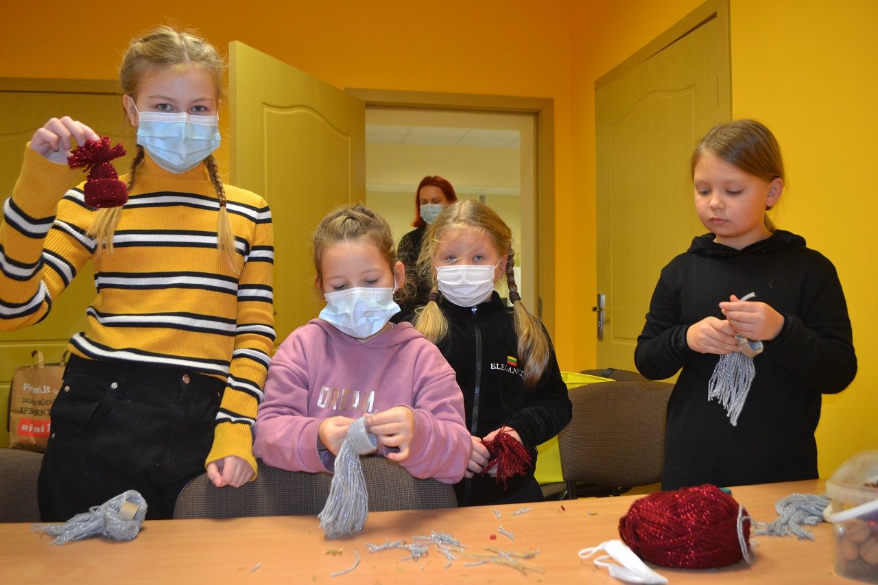 Ypatingai džiaugsmingai dirbo mažosios musninkietės. Megaitės pasakojo, ką puoš savo vainikais, kaip lauks Kalėdų senelio, kur paliks jam sausainių ir pieno.