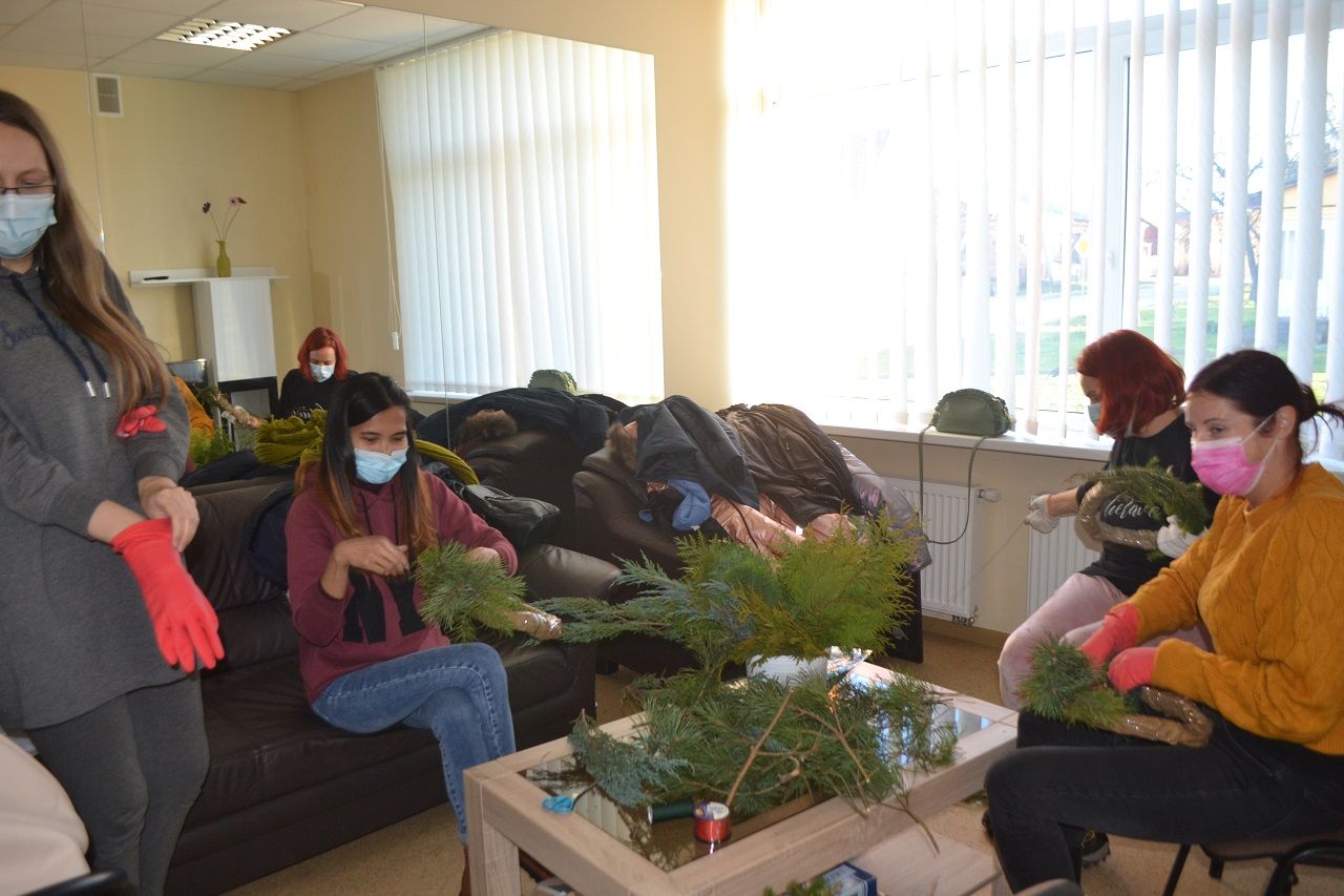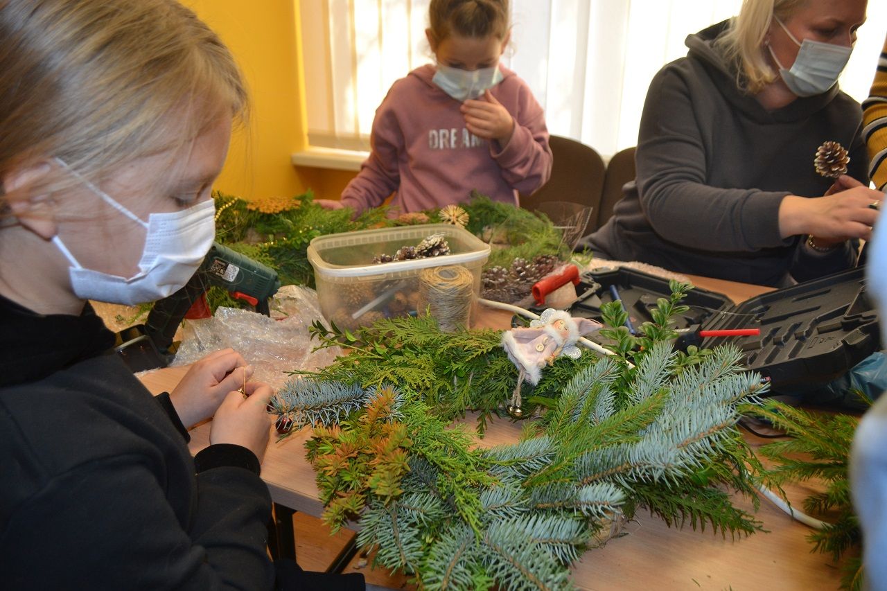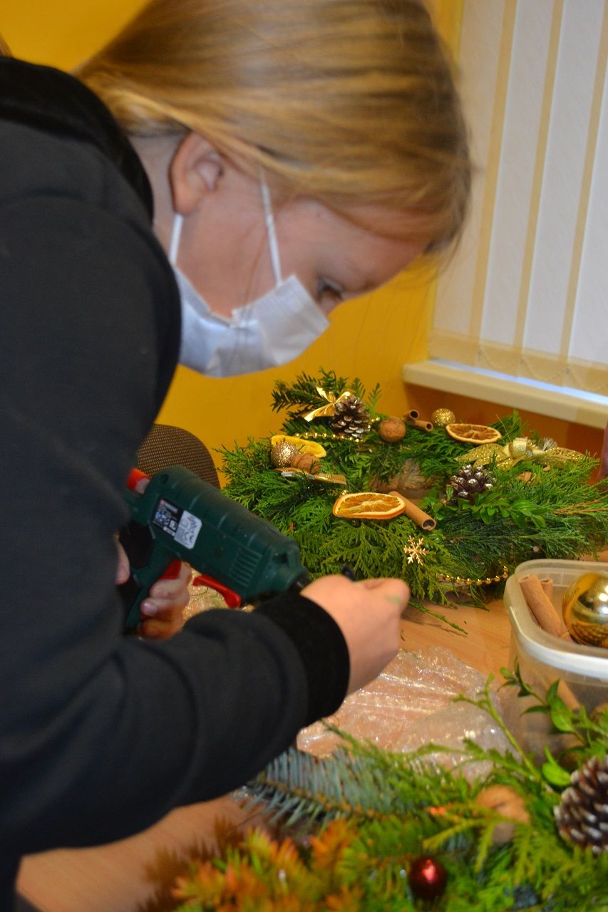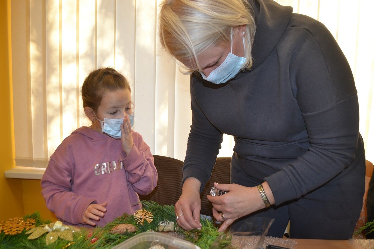 Ypatingai džiaugsmingai dirbo mažosios musninkietės. Megaitės pasakojo, ką puoš savo vainikais, kaip lauks Kalėdų senelio, kur paliks jam sausainių ir pieno.