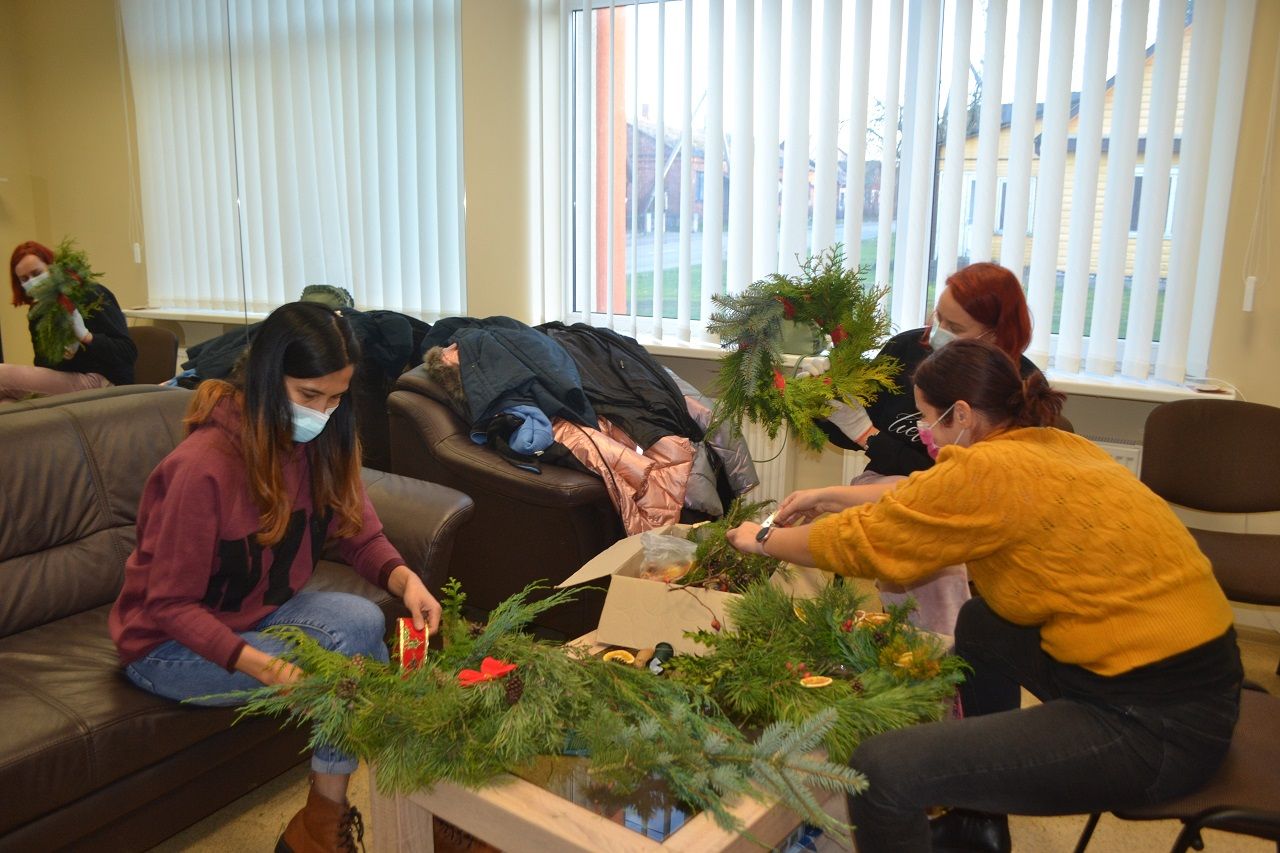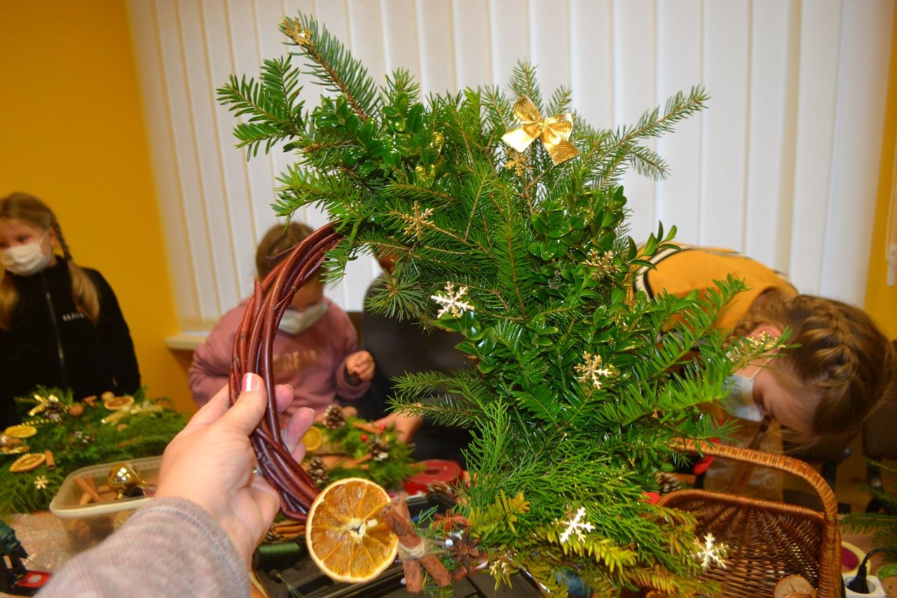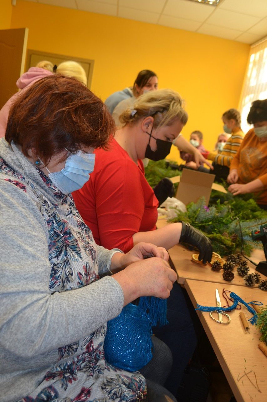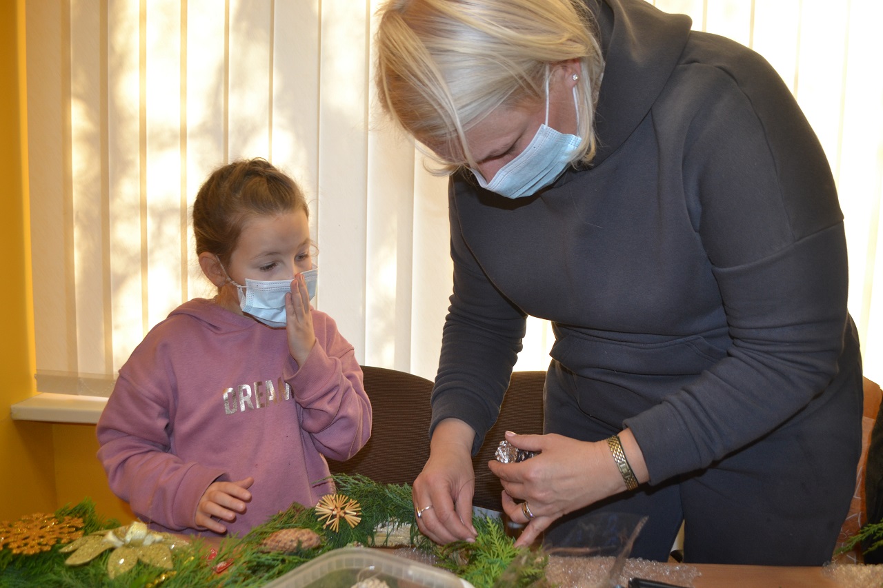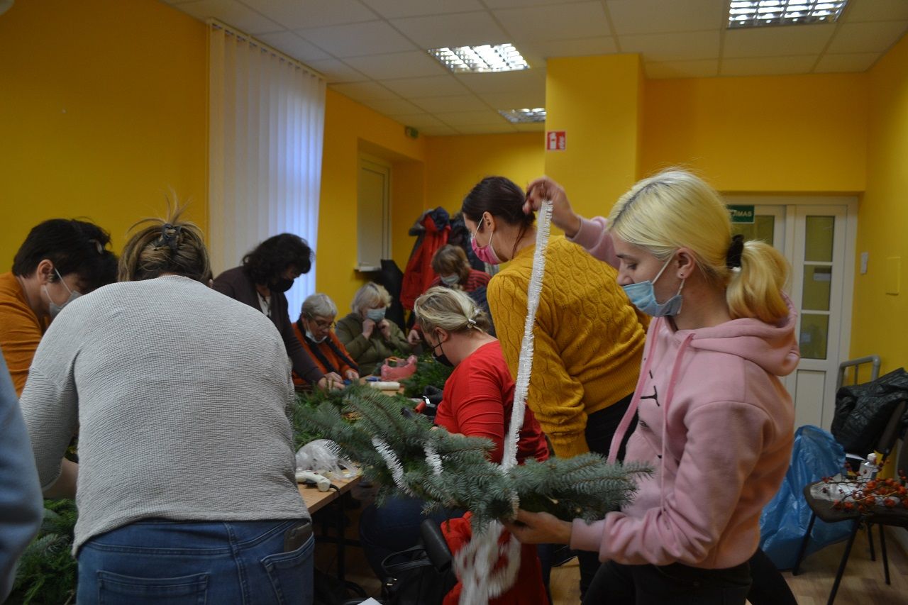 Ypatingai džiaugsmingai dirbo mažosios musninkietės. Megaitės pasakojo, ką puoš savo vainikais, kaip lauks Kalėdų senelio, kur paliks jam sausainių ir pieno.