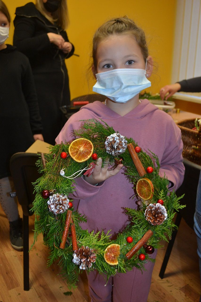 Eglišakiai, tujos, kiti žolynai greitai aspivijo apie vainikų pagrindus ir tapo dailiais vainikais. Tuomet kiekvienas rinkosi norimus papuošimus ir jais puošė savo vainiką. Vieni rinkosi gamtos medžiagas, kitiems labiau patiko blizgantys kaspinėliai ir žaisliukai. Vieni nusipynė vainiką šventiniam stalui, kiti durims puošti.