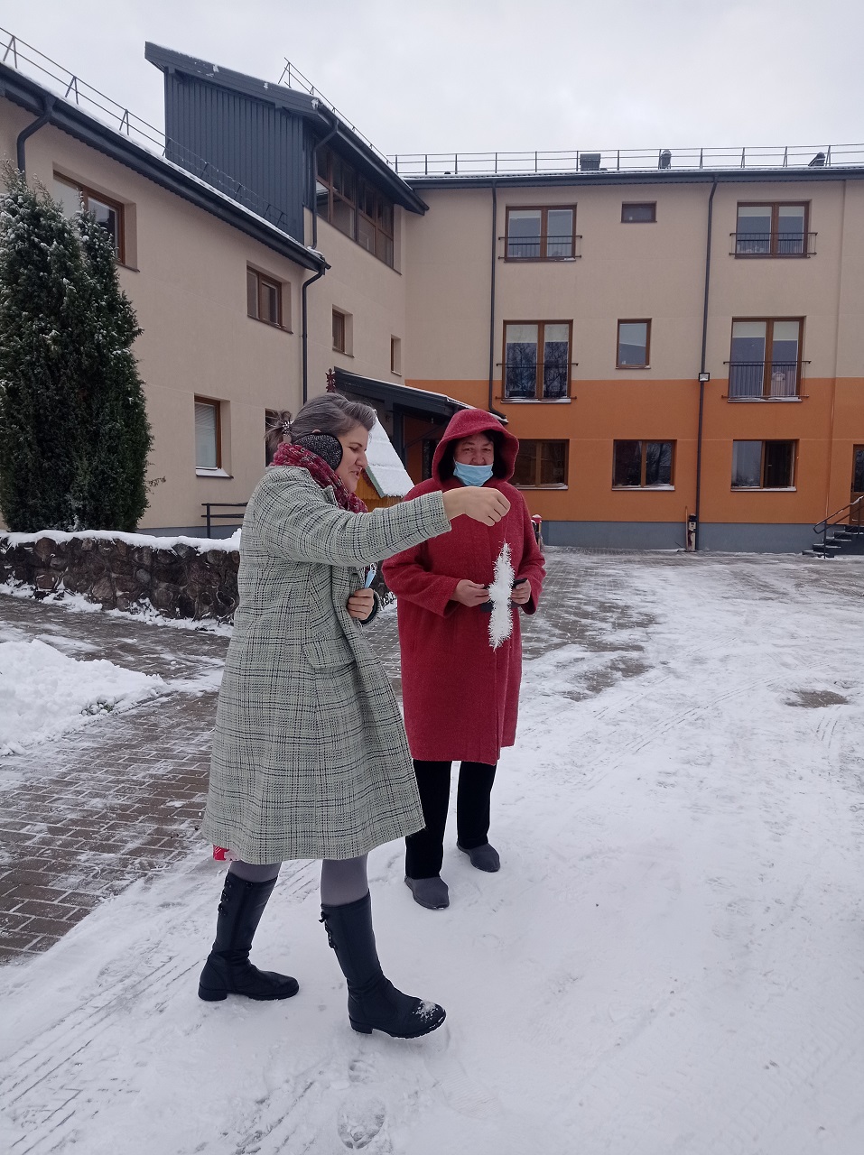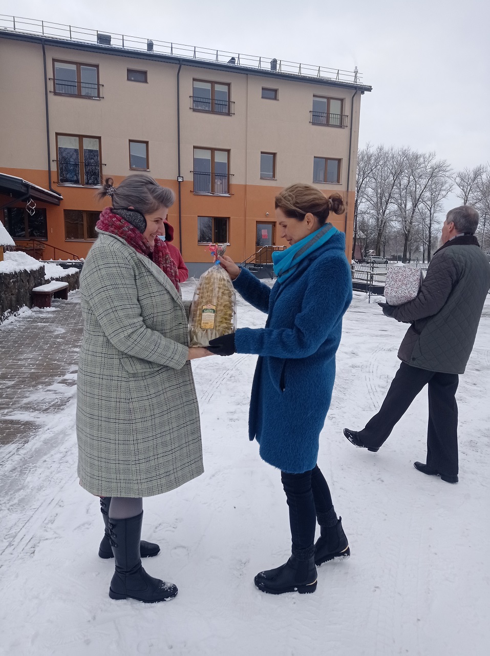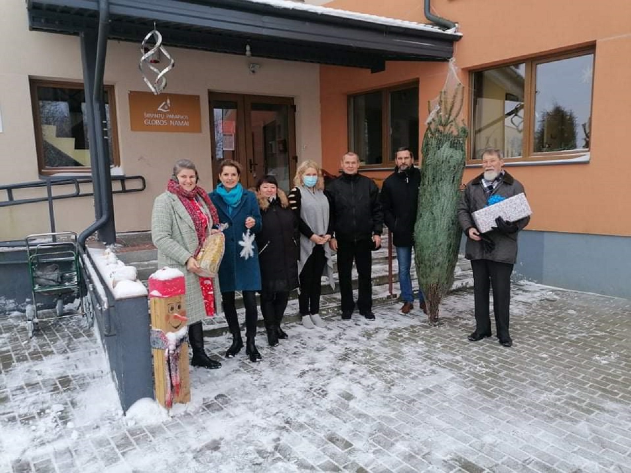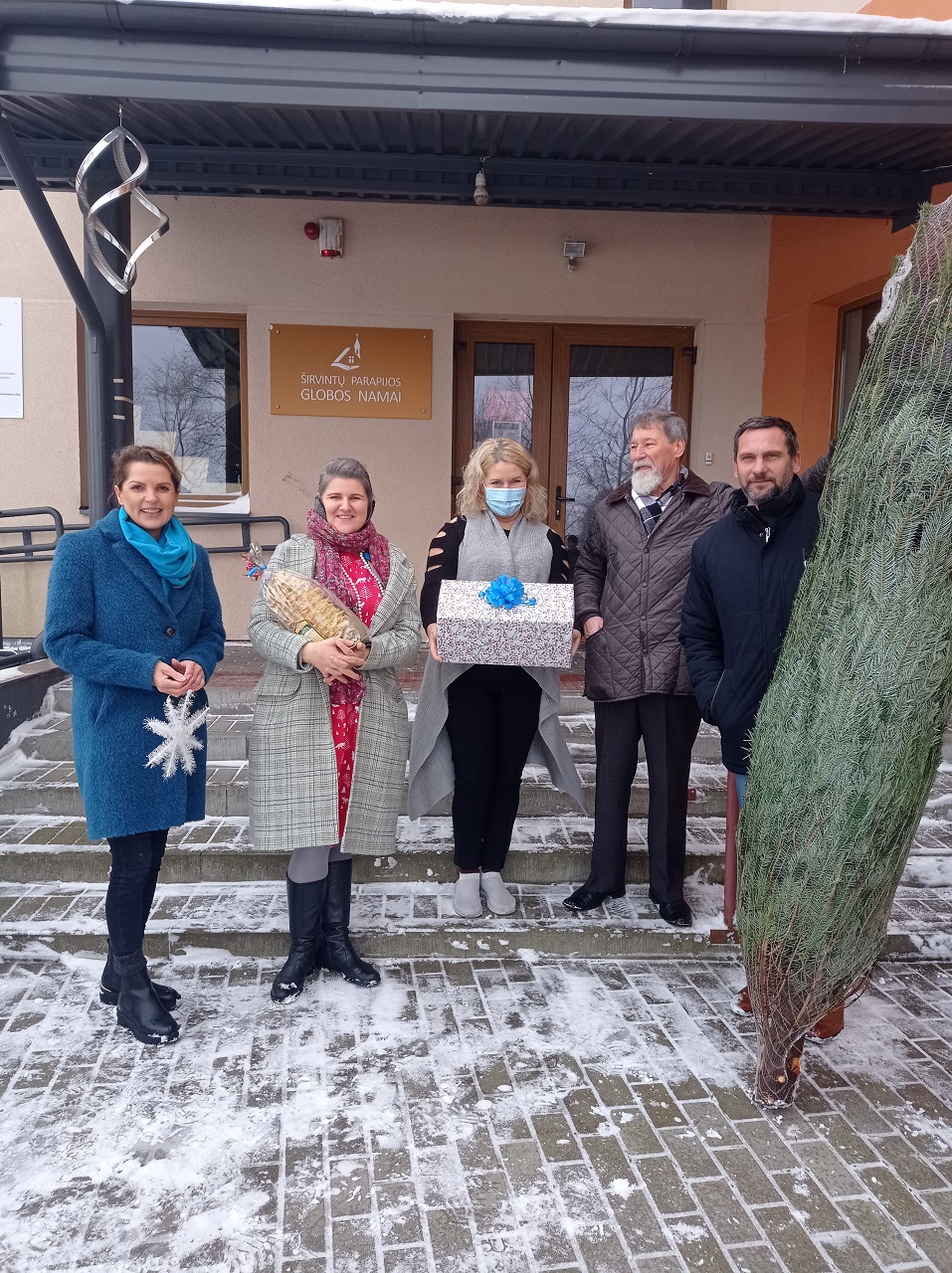 Perduodami įstaigų atstovams  Kalėdines egles ir saldžias dovanas, palinkėjome gražiai atšvęsti šventes ir likti sveikiems. Neturime galimybes pabendrauti, aplankyti globos įstaigų gyventojų, kartu puošti eglutę, bet ir neapkabinę, bei nepakalbinę galime nudžiuginti vieni kitus. O juk džiuginti taip gera.