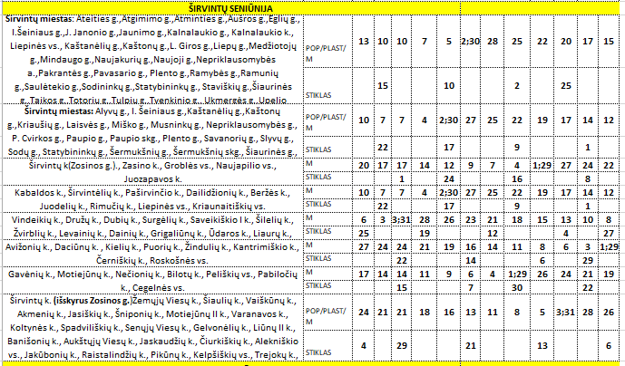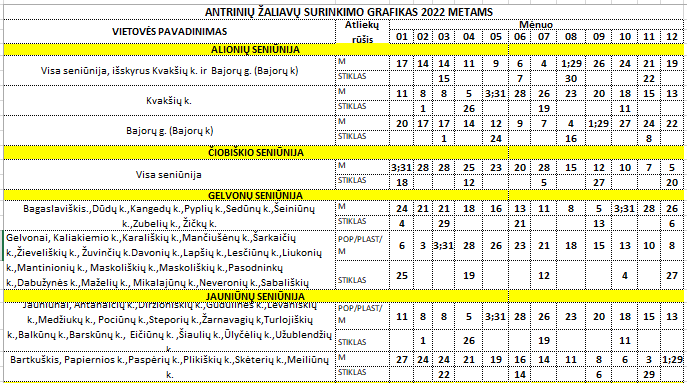 Skelbiamas 2022 m. antrinių žaliavų išvežimo grafikas