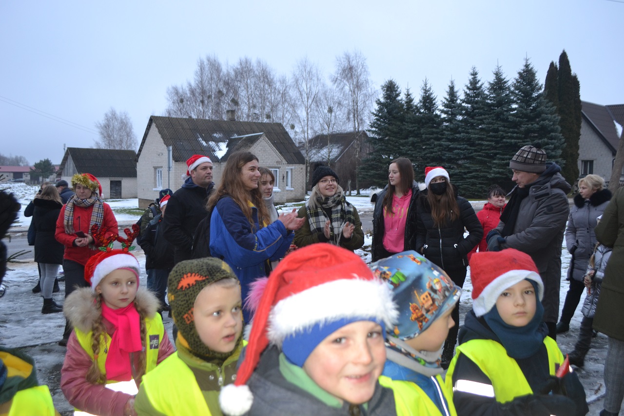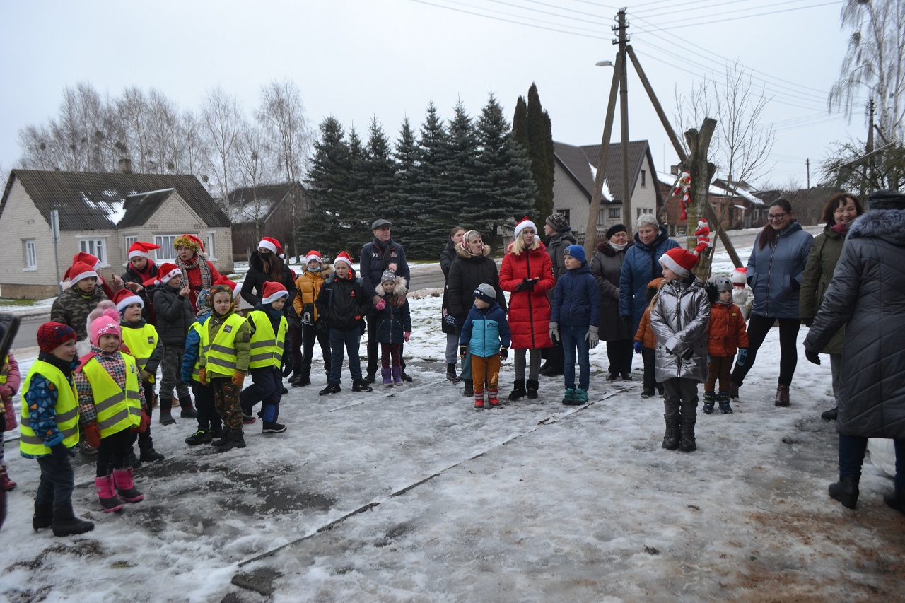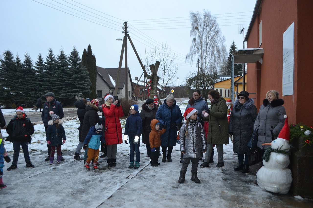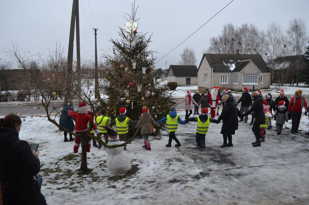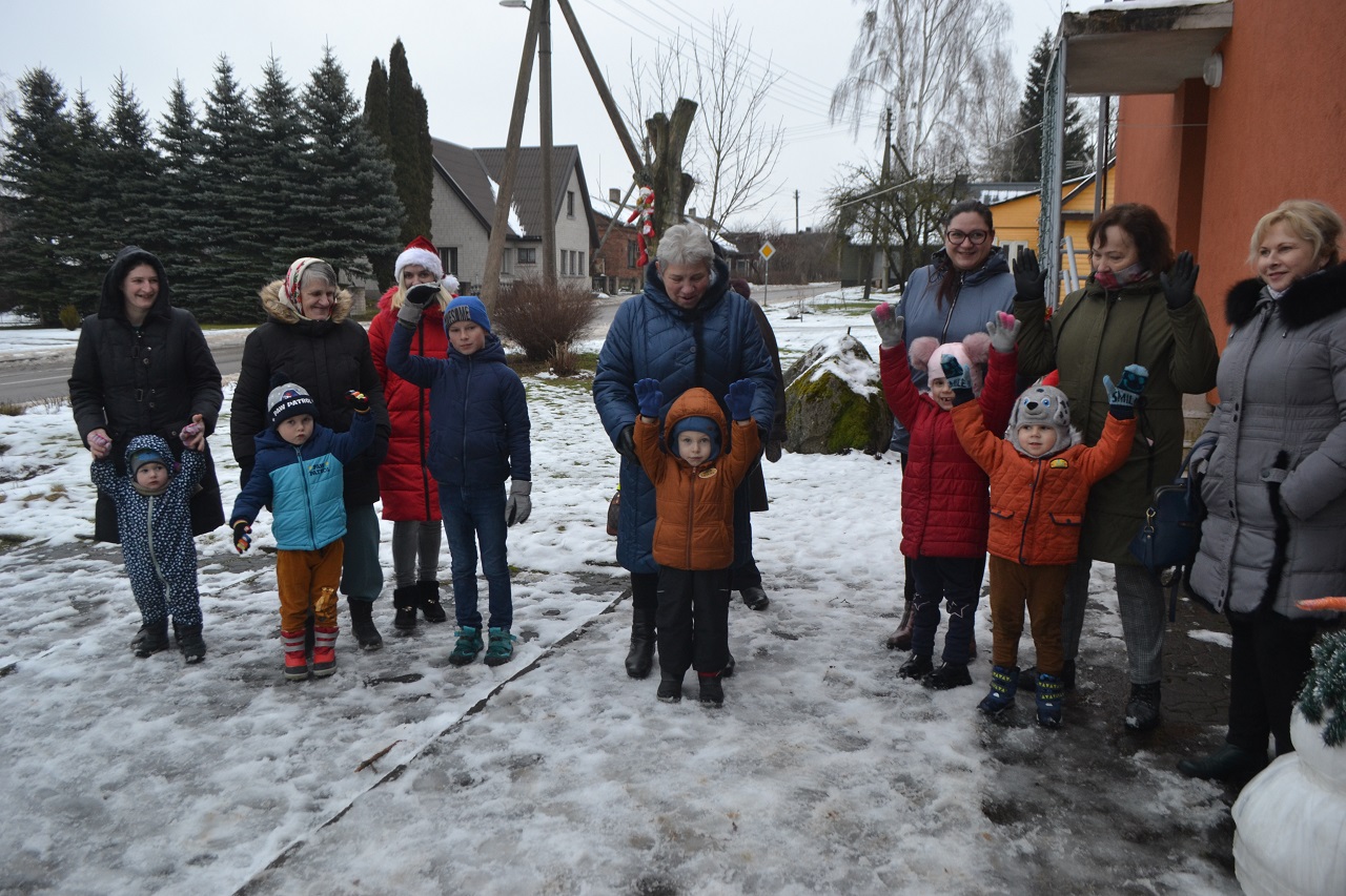 O vaikai džiaugėsi. Su Kalėdų seneliu, seniūne Birute, bendruomenės pirmininkė Jadvyga, klebonu Marium, auklėtoja Rita, dienos centro vadovais ir kitais Musninkų kaimo bendruomenės nariais ėjo ratelius, dainavo ir džiaugėsi artėjančiomis šventėmis.