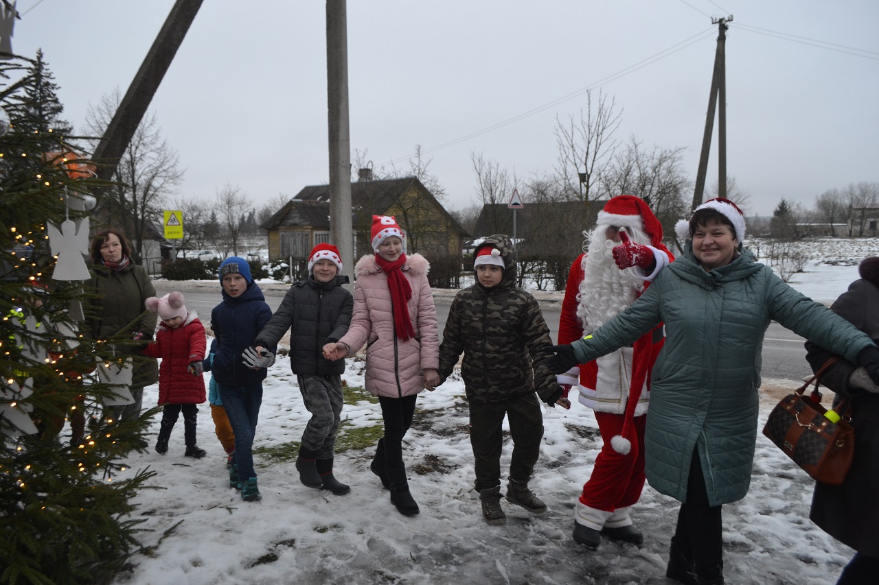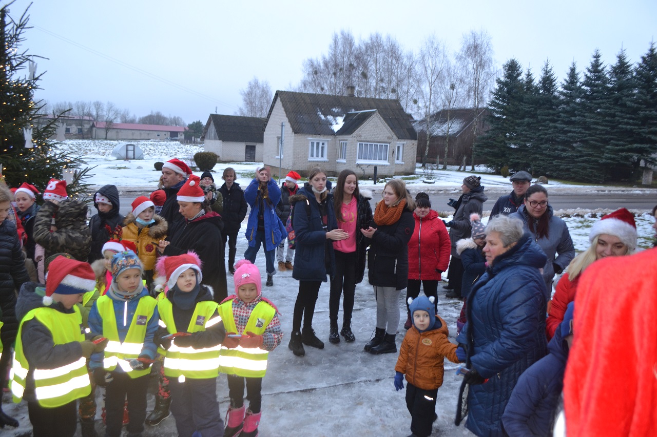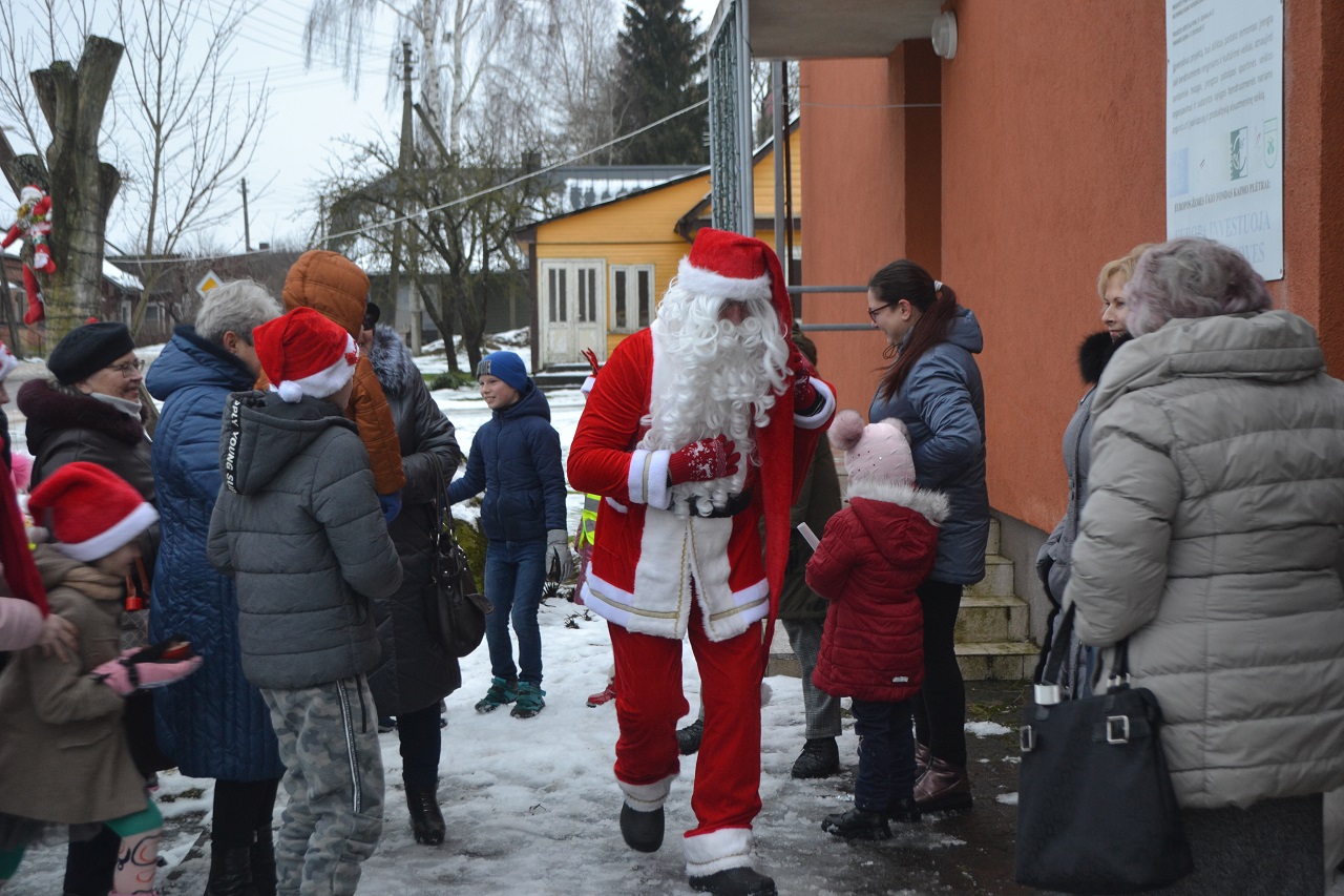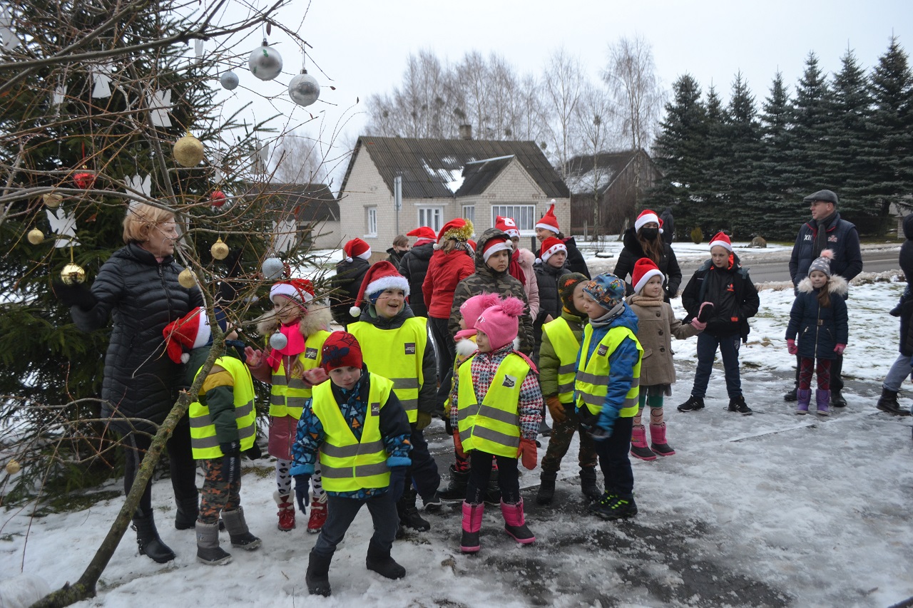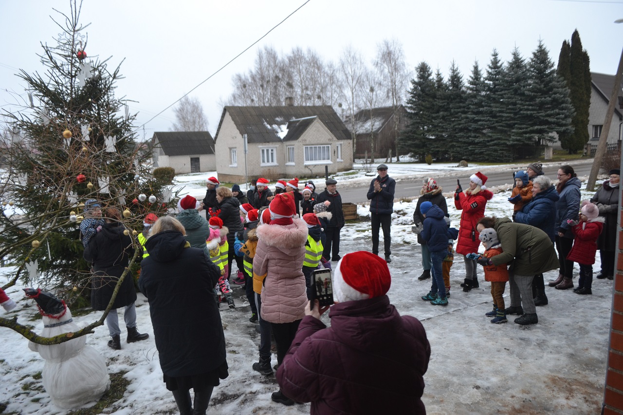O vaikai džiaugėsi. Su Kalėdų seneliu, seniūne Birute, bendruomenės pirmininkė Jadvyga, klebonu Marium, auklėtoja Rita, dienos centro vadovais ir kitais Musninkų kaimo bendruomenės nariais ėjo ratelius, dainavo ir džiaugėsi artėjančiomis šventėmis.