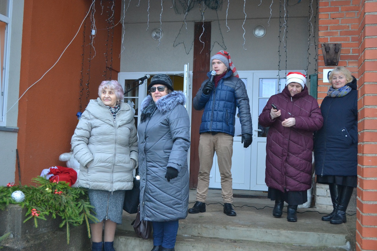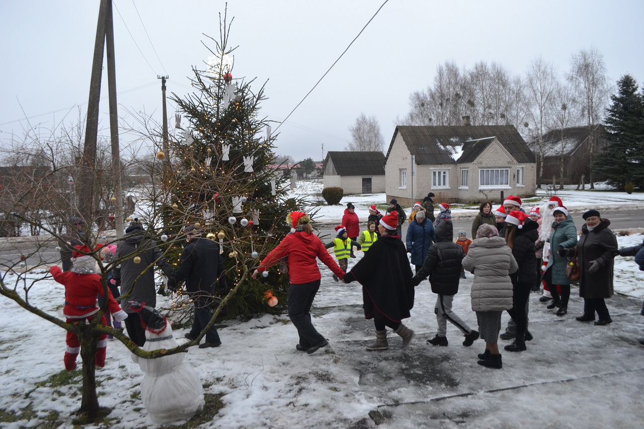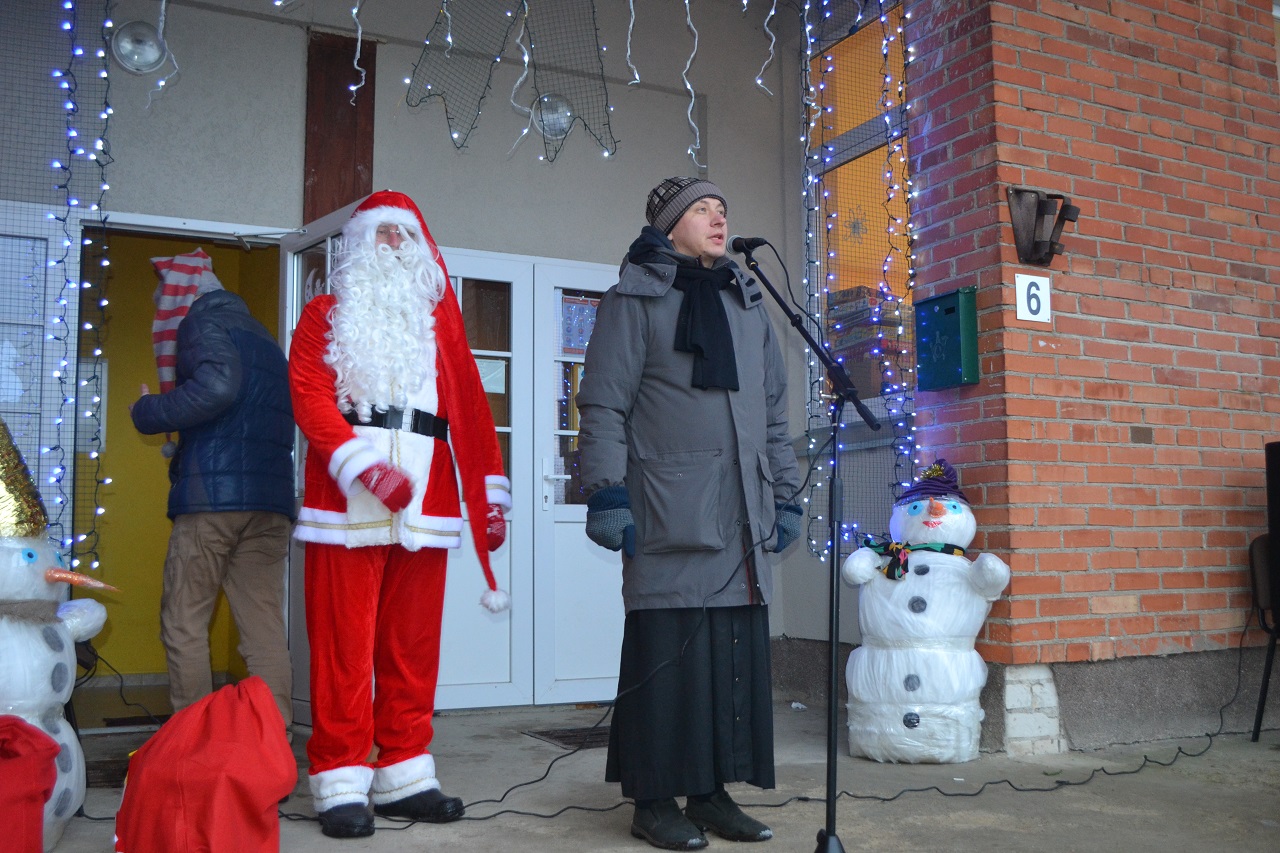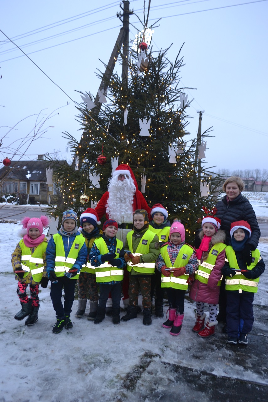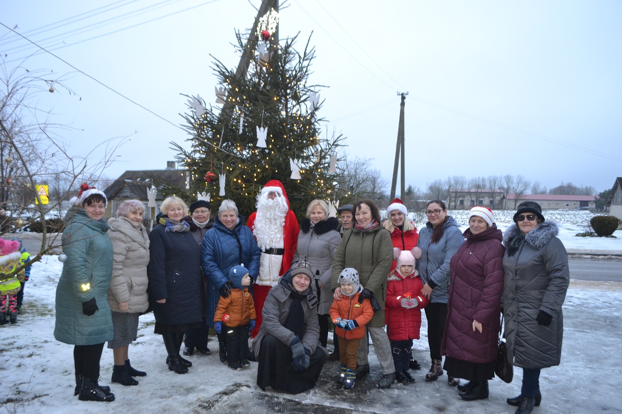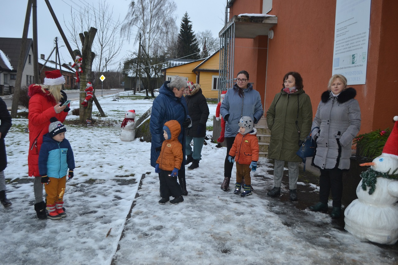 O vaikai džiaugėsi. Su Kalėdų seneliu, seniūne Birute, bendruomenės pirmininkė Jadvyga, klebonu Marium, auklėtoja Rita, dienos centro vadovais ir kitais Musninkų kaimo bendruomenės nariais ėjo ratelius, dainavo ir džiaugėsi artėjančiomis šventėmis.