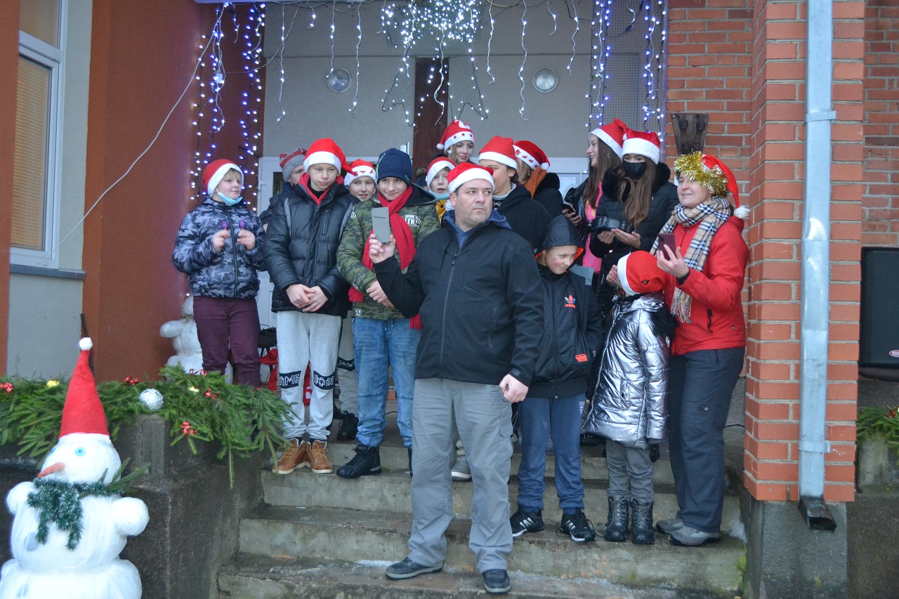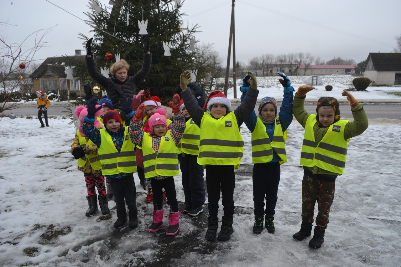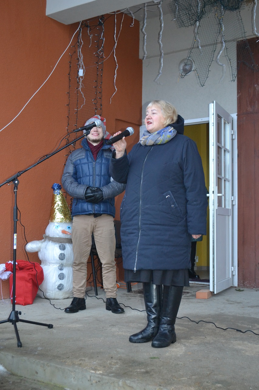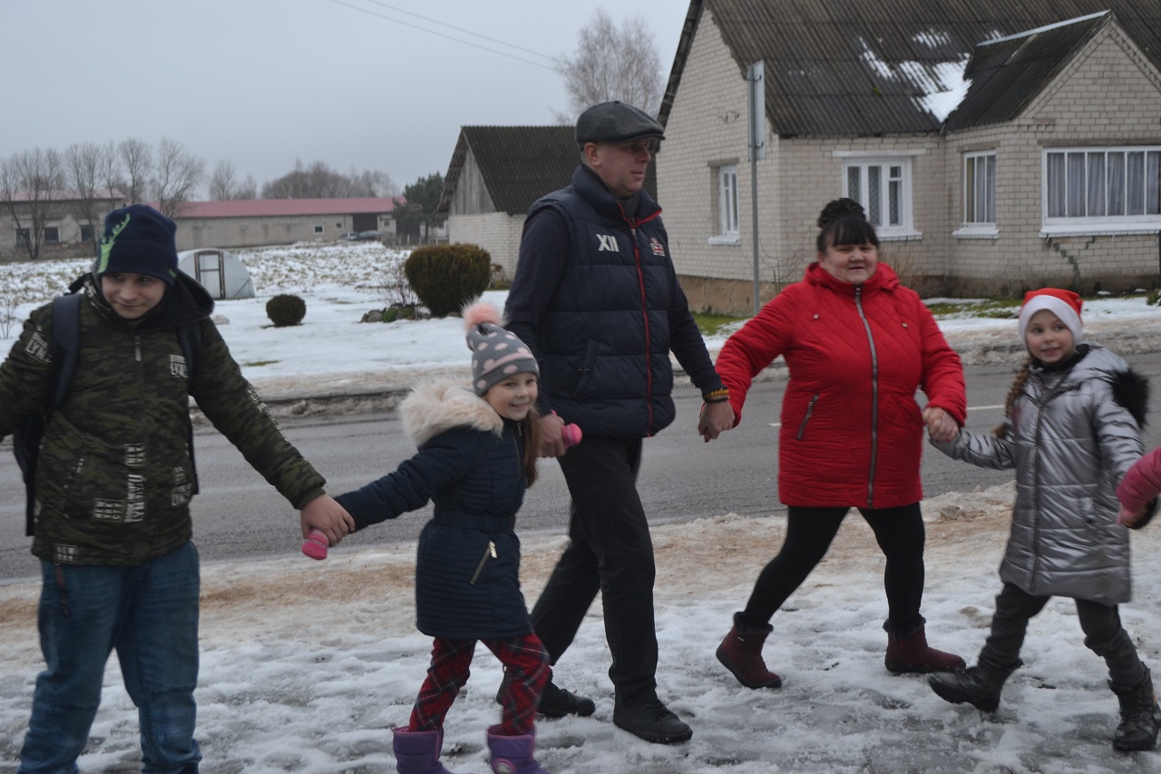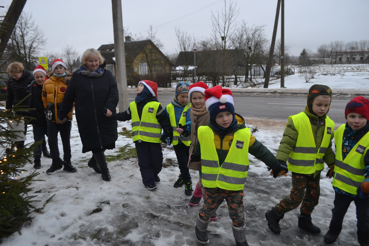 O vaikai džiaugėsi. Su Kalėdų seneliu, seniūne Birute, bendruomenės pirmininkė Jadvyga, klebonu Marium, auklėtoja Rita, dienos centro vadovais ir kitais Musninkų kaimo bendruomenės nariais ėjo ratelius, dainavo ir džiaugėsi artėjančiomis šventėmis.