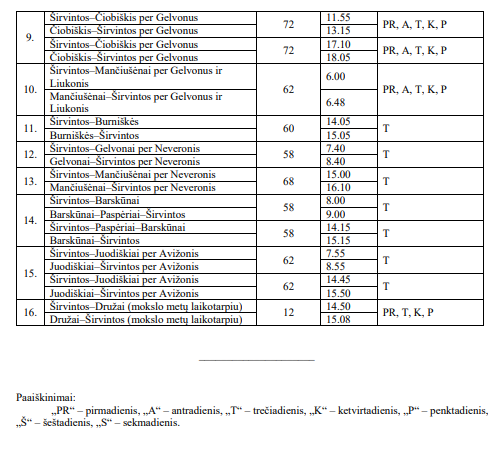 Tai kad čia tas pats grafikas kaip ir dabar. Ar yra nors vienas papildomas maršrutas?