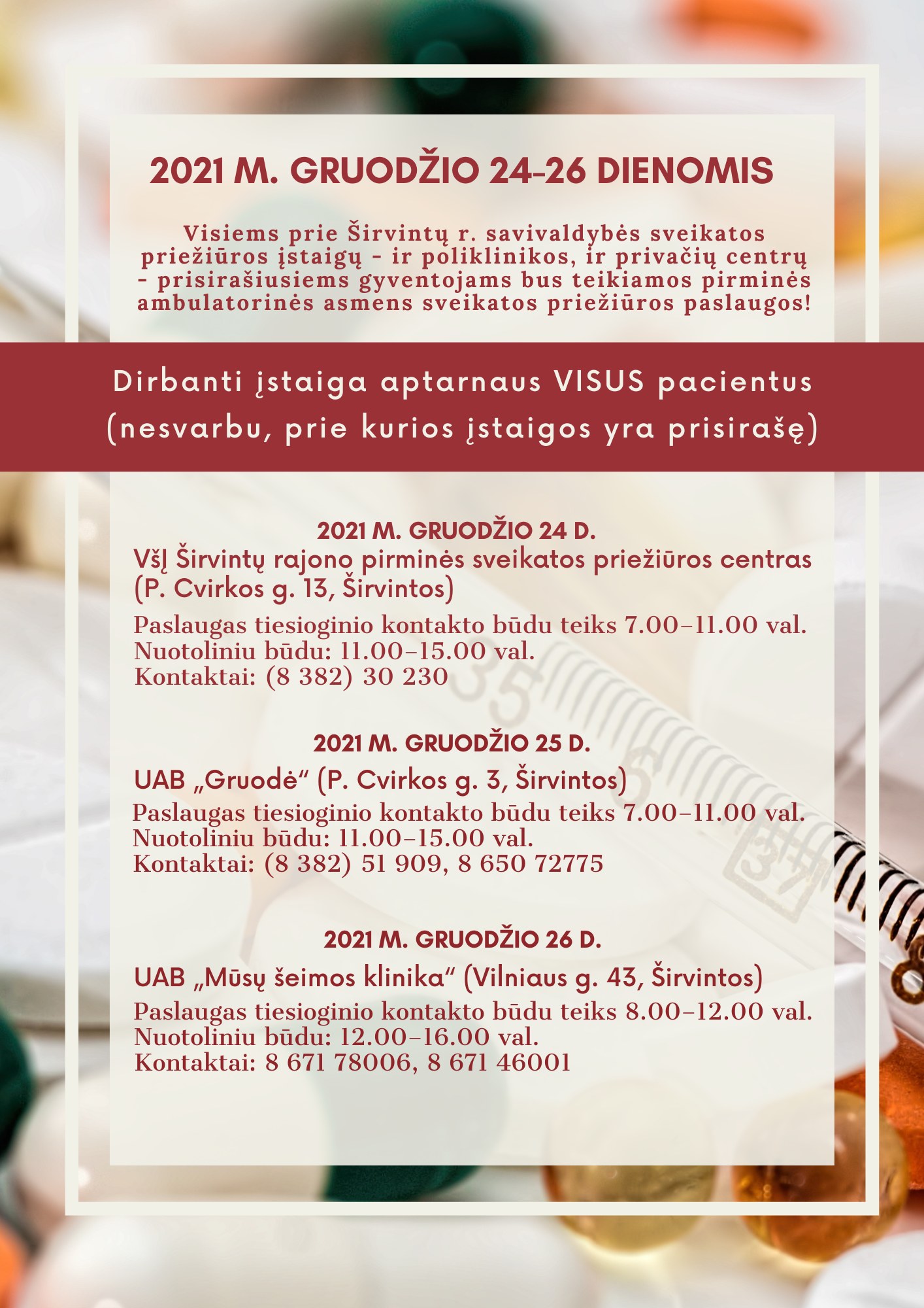 🚑 Dar kartą primename, kad Širvintų sveikatos priežiūros įstaigos veiks visu šventiniu laikotarpiu!