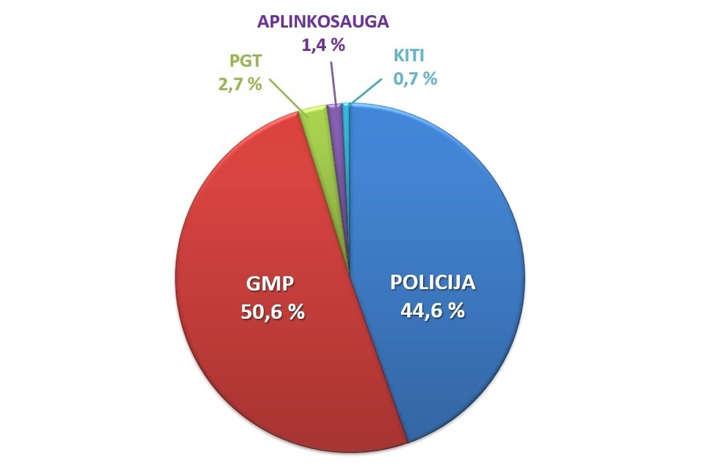 Priešgaisrinei gelbėjimo tarnybai ir aplinkosaugininkams 2021 metais taip pat perduota daugiau pranešimų. Užregistruoti 33 176 įvykiai priskirti priešgaisrinės gelbėjimo tarnybos kompetencijai ir 17 265 – aplinkosaugos (2020 metais atitinkamai 32 620 ir 15 146).