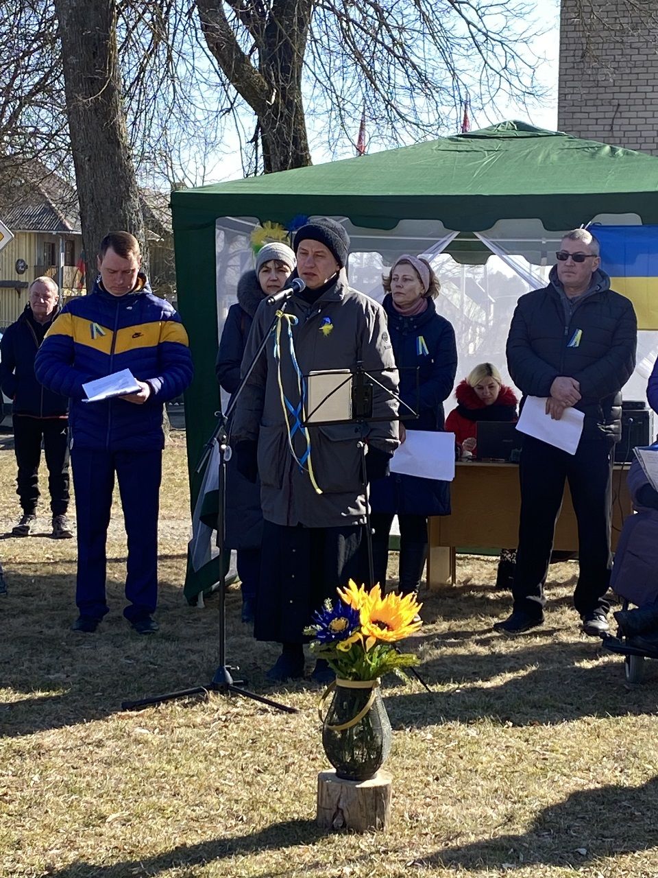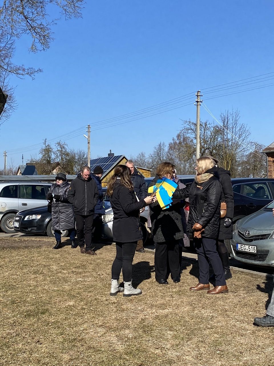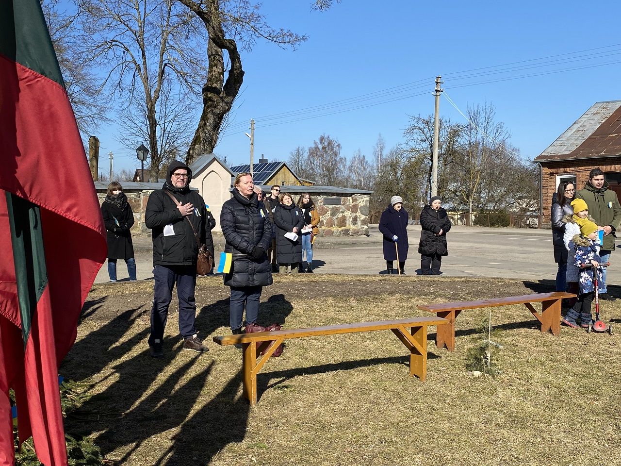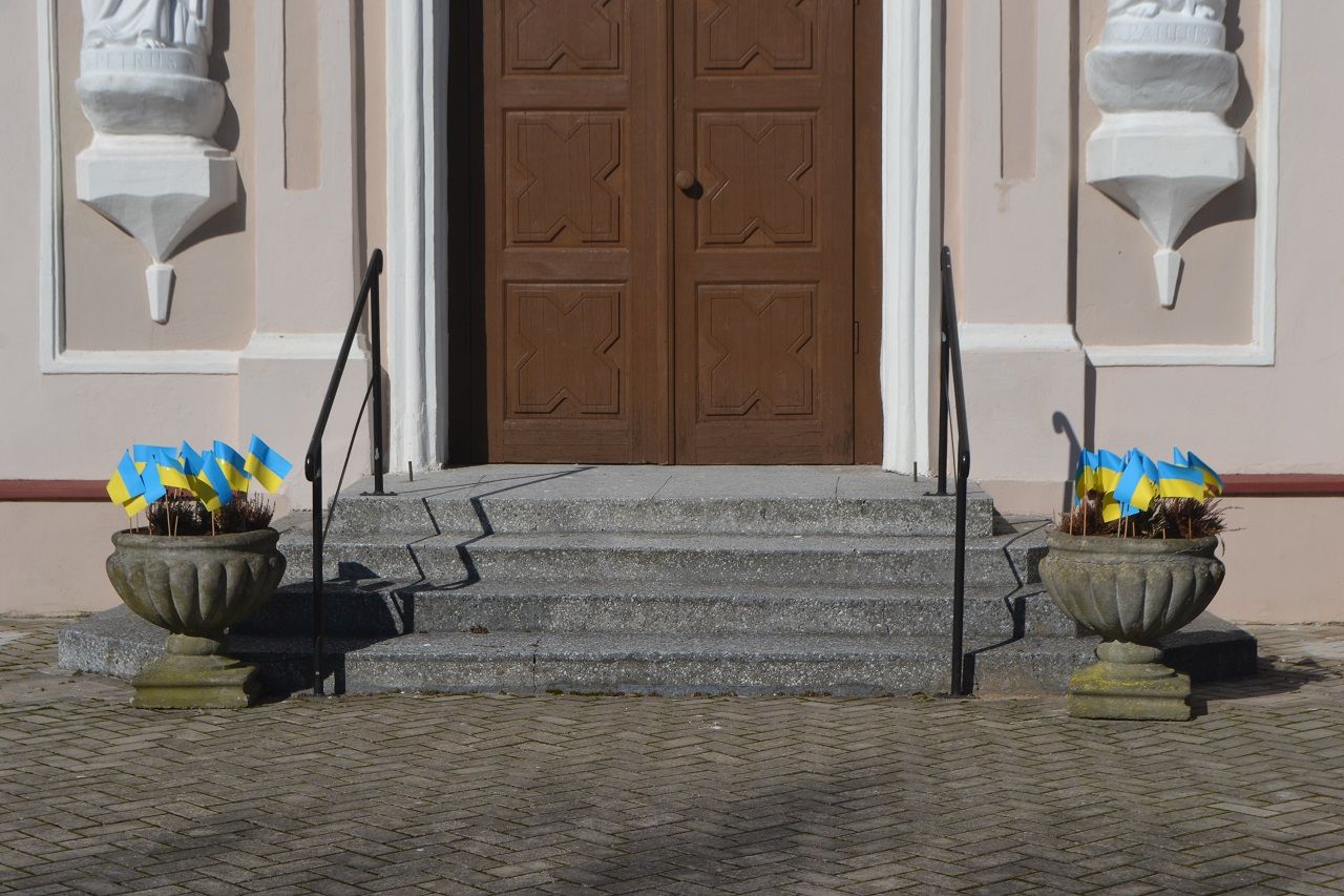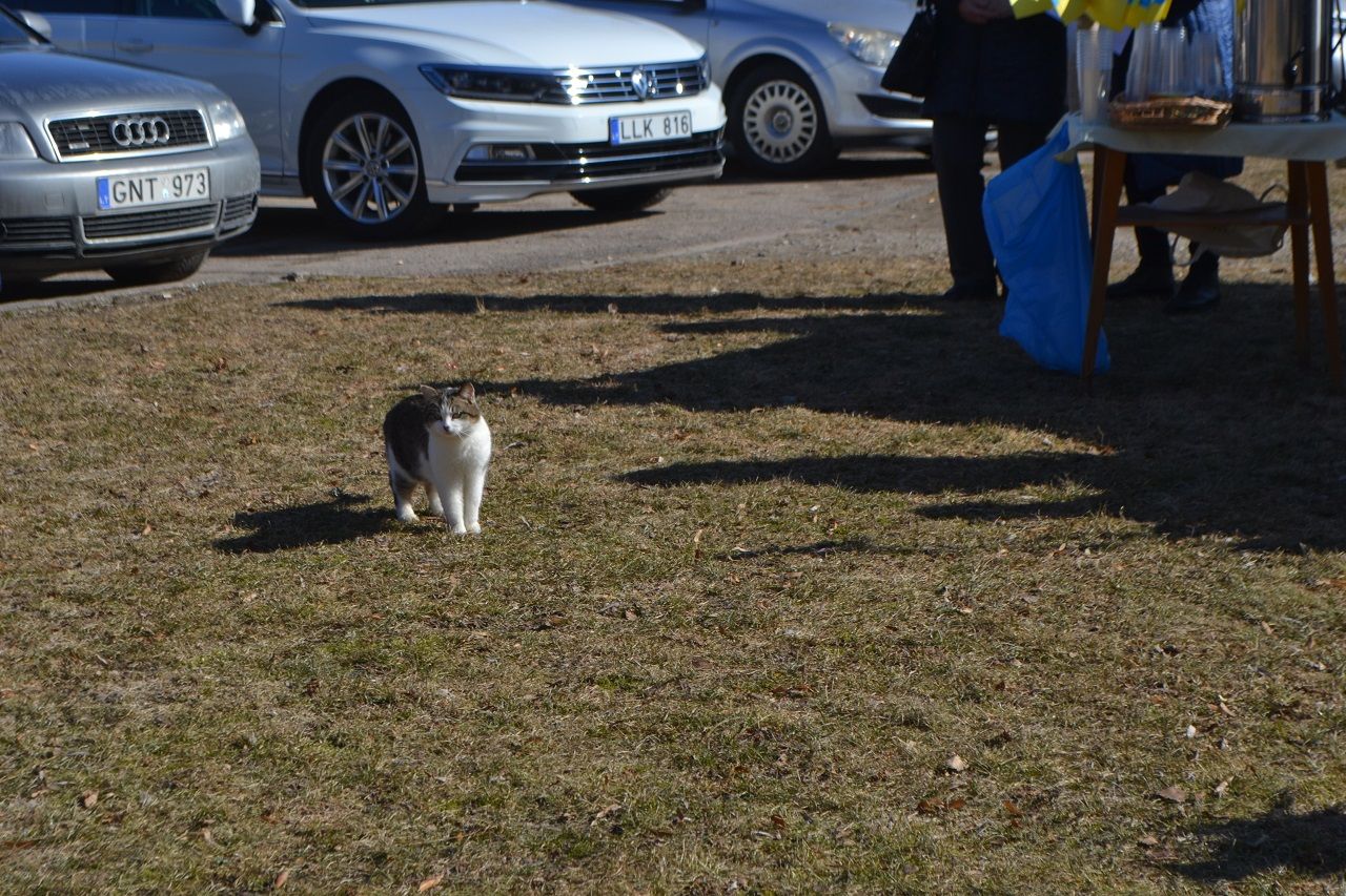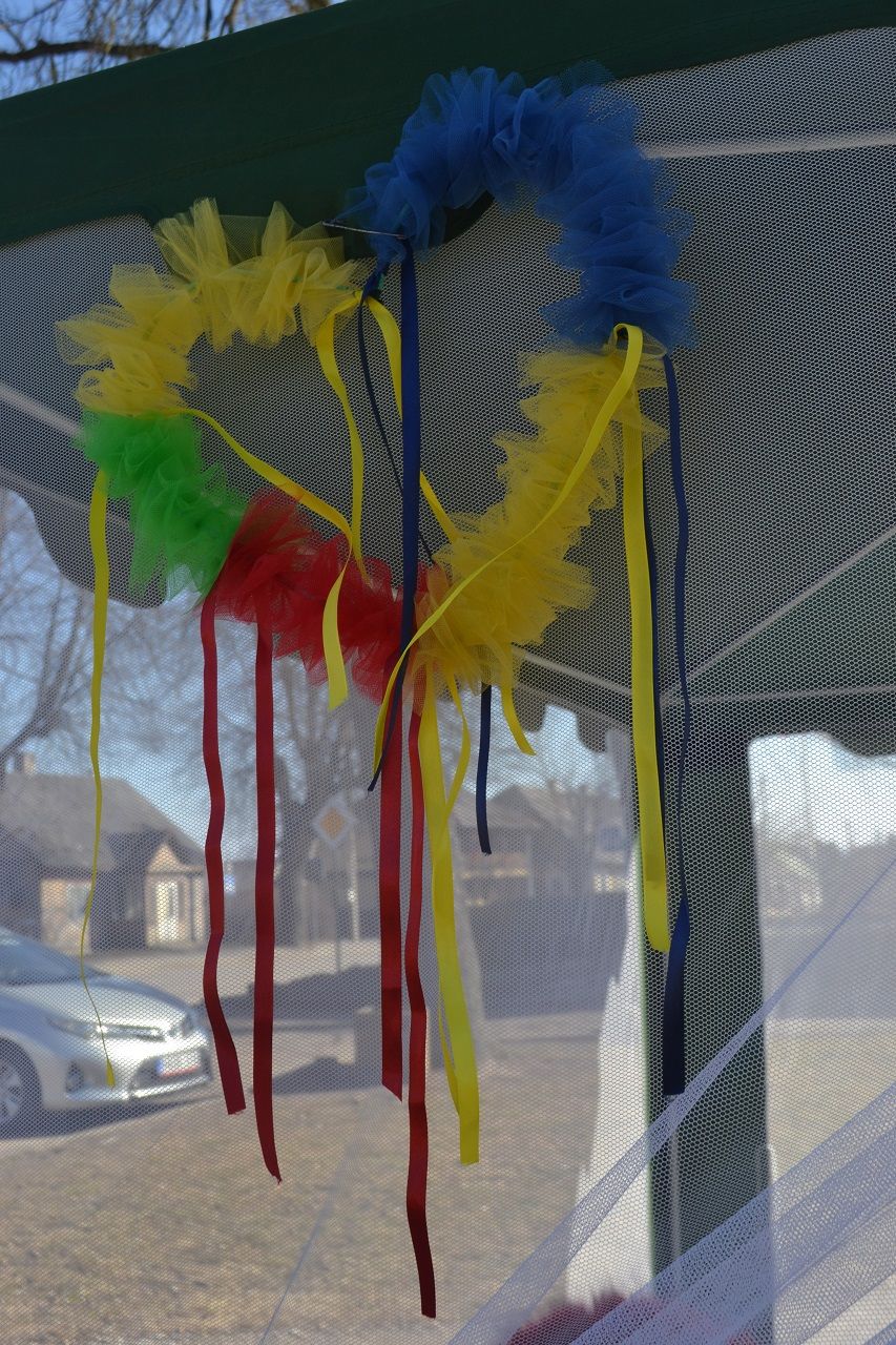 Akcijos dalyviams buvo dalijamos bendruomenės narių gamintos Ukrainos vėliavėlės, įsegti ženkliukai, kuriuos pagamino Jelena Masiukė.