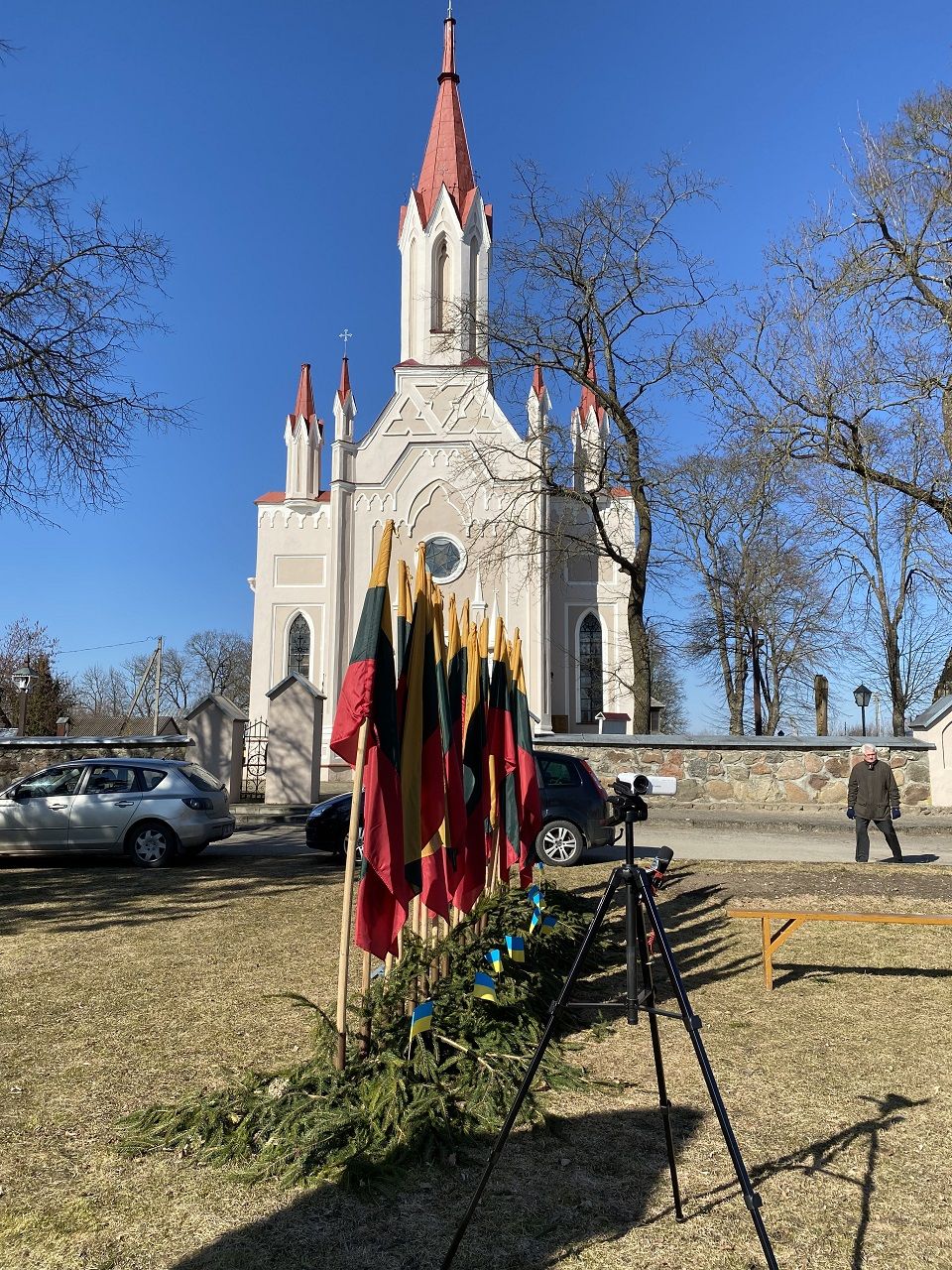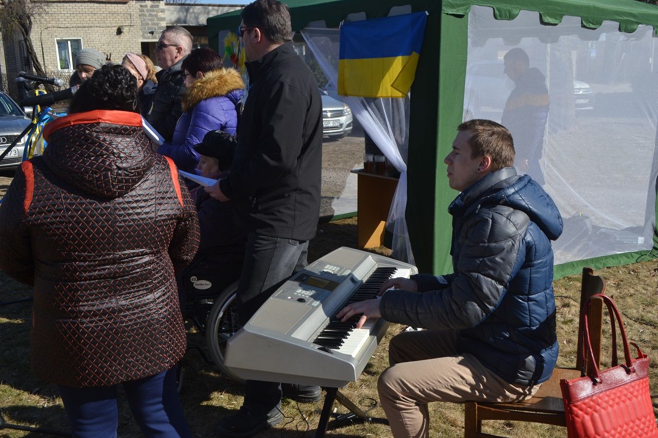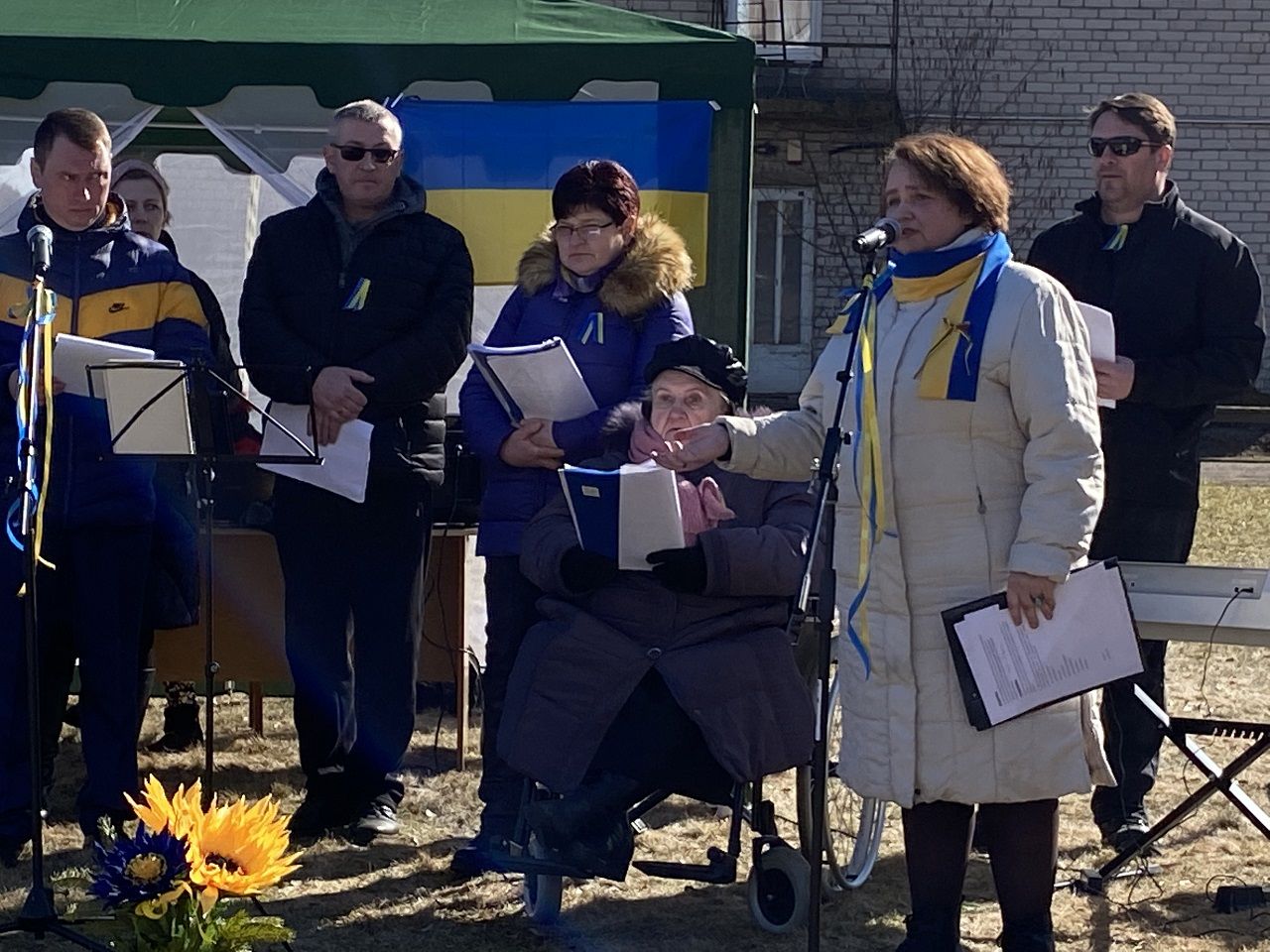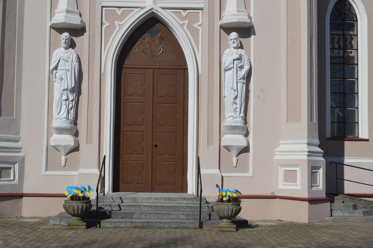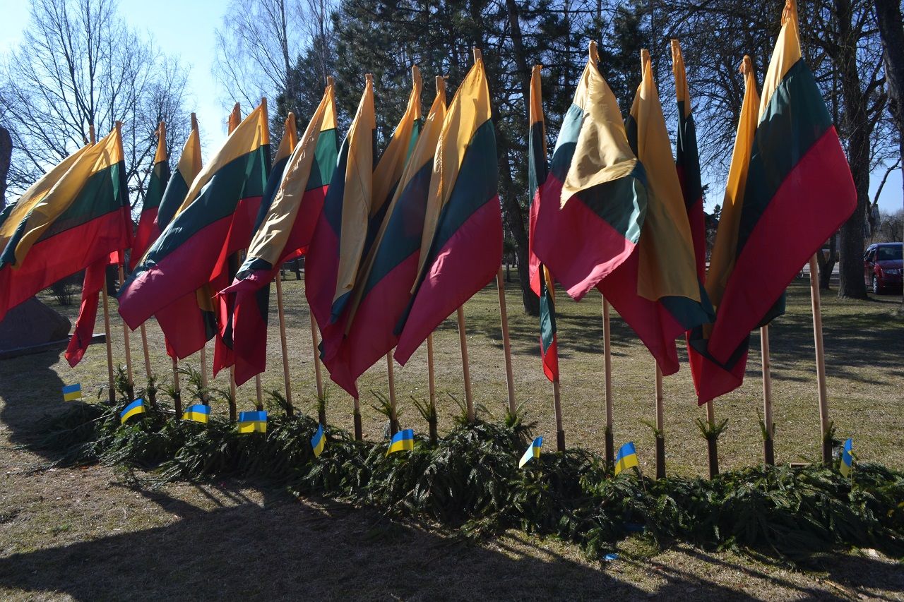 Akcijos dalyviams buvo dalijamos bendruomenės narių gamintos Ukrainos vėliavėlės, įsegti ženkliukai, kuriuos pagamino Jelena Masiukė.