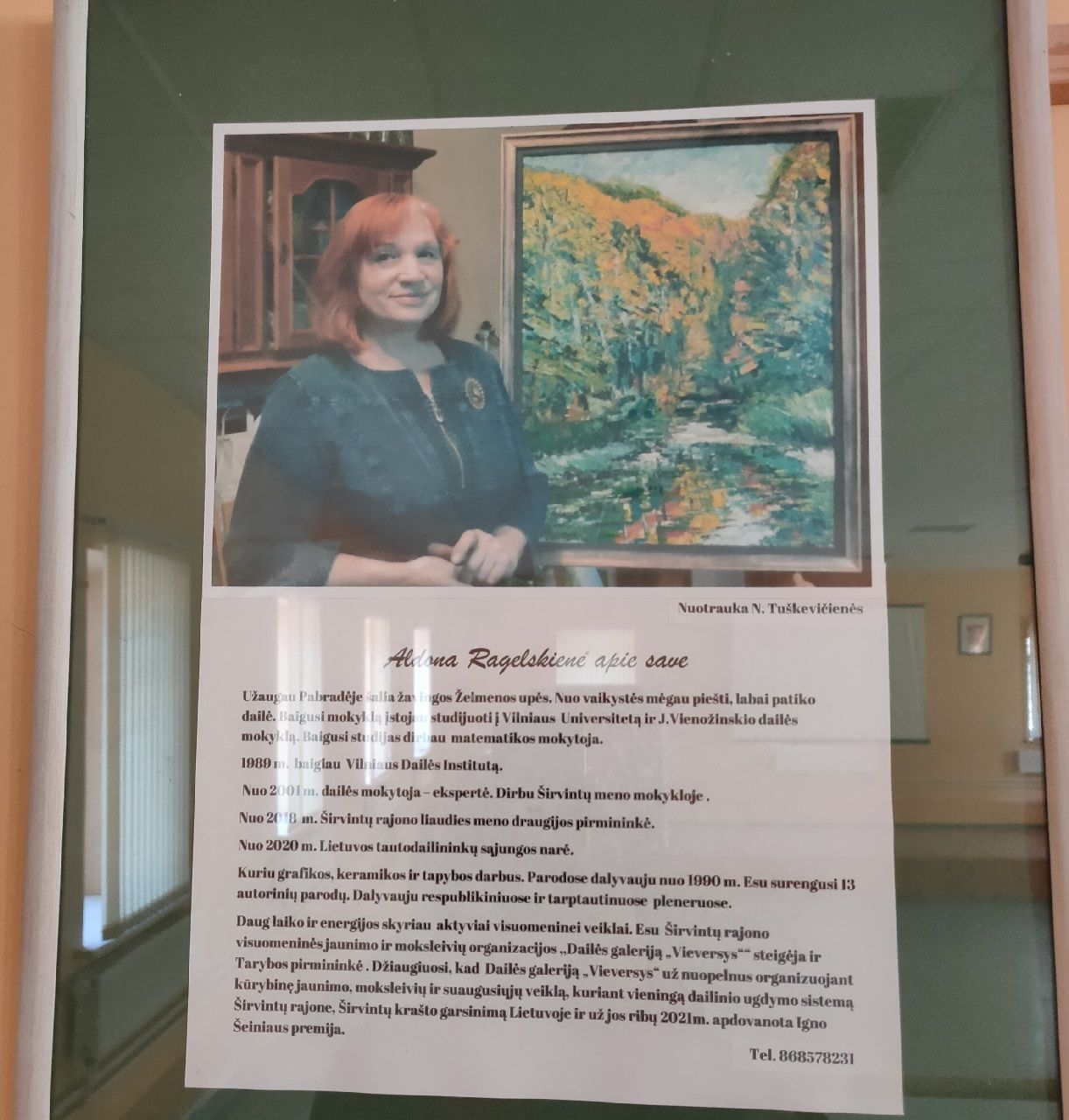 2. Darbai gražūs, bet šių dienų kontekste labai būtų svarbu žinoti ponios Ragelskienės požiūrį į vykstantį karą Ukrainoj. Žinom kad jos sūnus garsiai apie tai pasisako, palaiko putiną ir jo veiksmus, palaiko visokius rusijos judėjimus Lietuvoje. Jei mamos nuomonė sutinka su sūnaus tai reiktų tokias parodas ignoruoti.