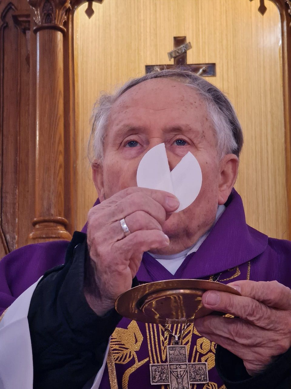 Malda už seseles baigėsi jaukiu susibūrimu parapijos namų salėje prie stalo, kur maistu ir bendryste dalinosi Vyskupas, seselės, jų artimieji ir parapijiečiai.