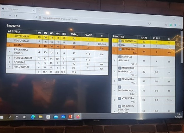Naujiena ir tai, kad žaidimo rėmėjų būrį papildė interneto portalas “Krašto žinios”. Gal dėl juntamos turbulencijos, gal dėl velnio tuzino, o gal ir dėl to, kad sezonas įsibėgėjo, rezultatų lentelės skaičiai įdomiai dėliojosi iki pat pabaigos. KIETAI VIRTI dar kartą įrodė, kad jų patirtis vis dar yra didžiausias koziris ir laimėjo žaidimą su 73 taškais. Jiems šiandien įteiktas UAB “Ekmetos” prizas. Antri šiandien jau vis arčiau KIETAI VIRTIEMS ant kulnų lipantys KOVOTOJAI. Jie net 3 žaidimo turus surinko po lygiai taškų su laimėtojais ir pelnytai džiaugėsi UAB „Askovita“ gamybos įspūdingu ąsočiu ir VĖL laimės rato išsuktu „Mokas IT“ prizu. Trečioje vietoje – gausiausios komandos rekordą pasiekusi DERMĖ, pradėjusi žemu startu, tačiau įsivažiavusi ir laimėjusi 4-ąjį žaidimo turą. 4–5 vietas pasidalijo TURBULENCIJA ir RAUDONAS VERŠIS. Naujokų komandos puikų startą vainikavo ir žaidimo rėmėjo „Intimito“ prizas. Šeštoje vietoje liko 3 ture įspūdingą rezultatą parodęs BOKŠTAS. Na ir „Draustuko“ prizu vėl džiaugėsi vis rezultatyvesni PRADINUKAI.
