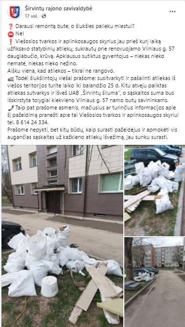 Tik vakar Širvintų rajono savivaldybė kreipėsi į šiukšlintojus, palikusius statybines atliekas prie Vilniaus g. 57 namo. Kaip visada – kaimynai nieko nematė ir negirdėjo.