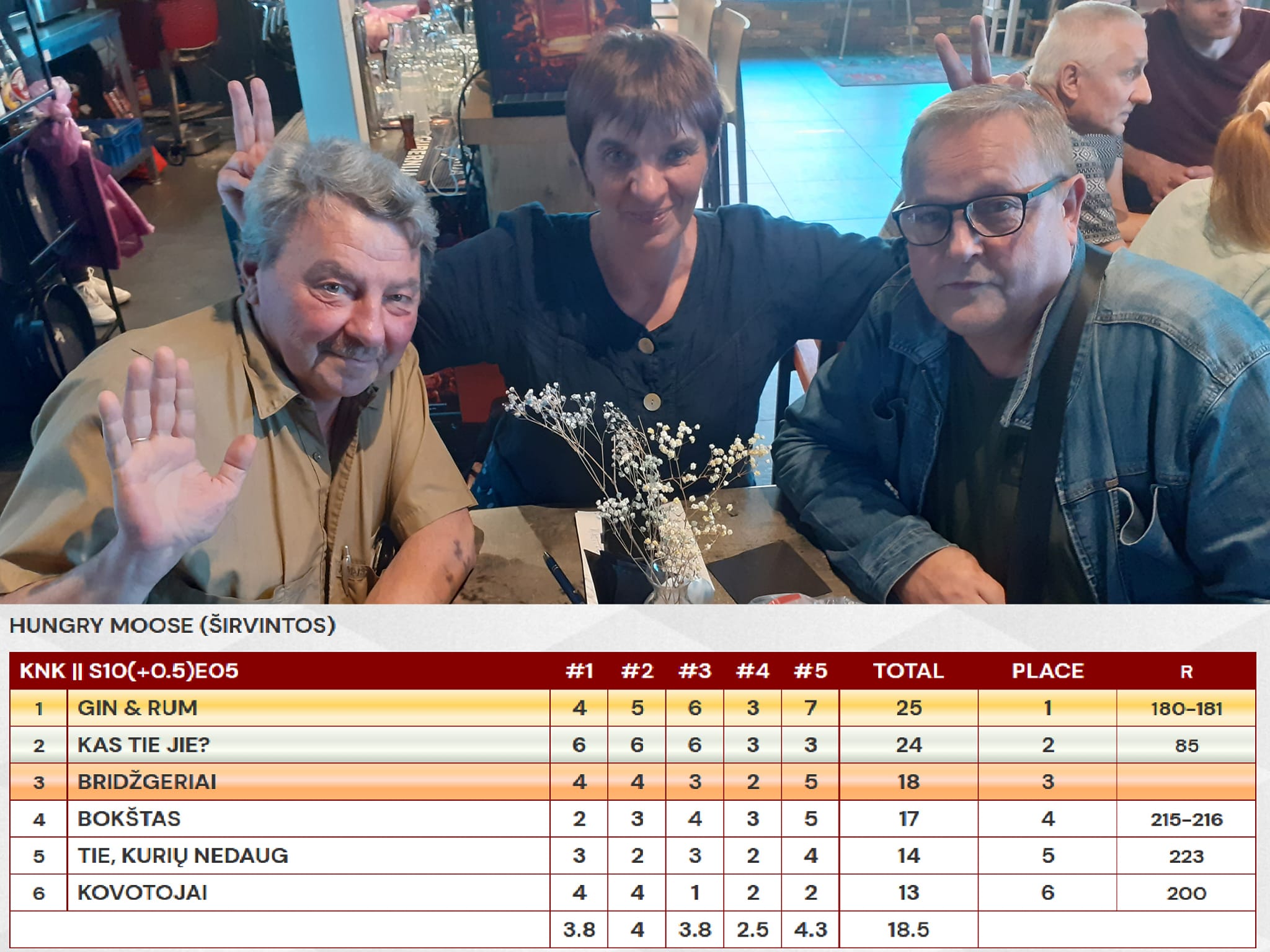 * pirmą kartą, tik trise žaidę (!!!) GIN&RUM iškovojo PERGALĘ ir pasiėmė Pergalė prizą! Tik trise, netgi be GIN prieš penkis etatinius lyderius!