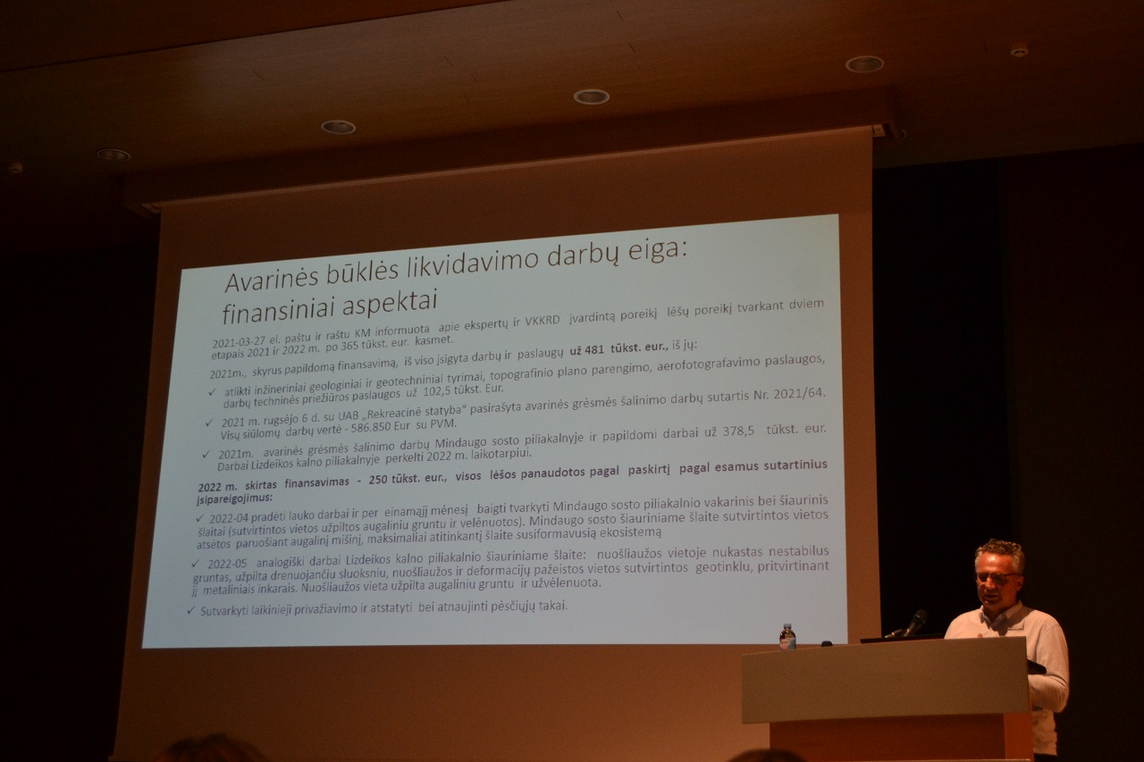 Įdomi buvo piliakalnių šlaitų avarinės būklės likvidavimo darbų apžvalga. Apie tai parašysime plačiau.