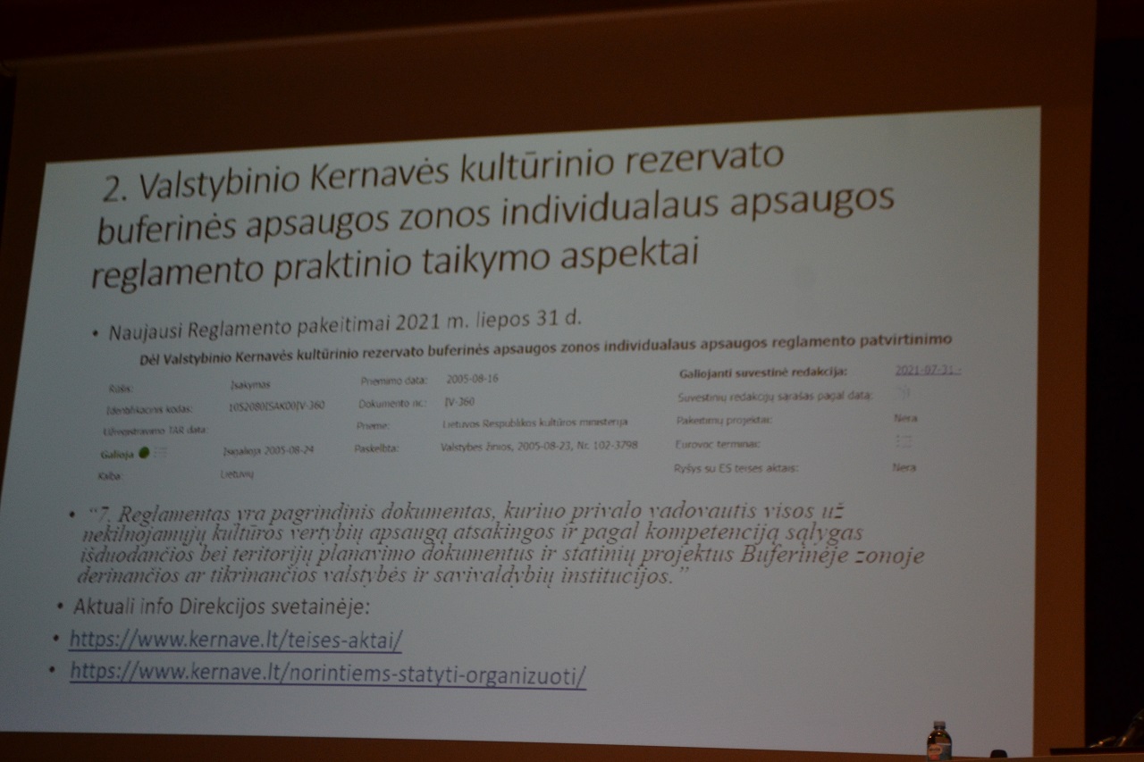 Valstybinio Kernavės kultūrinio rezervato buferinės apsaugos zonos individualaus apsaugos reglamento praktinio taikymo aspektai (pristatė Direkcijos atstovai);