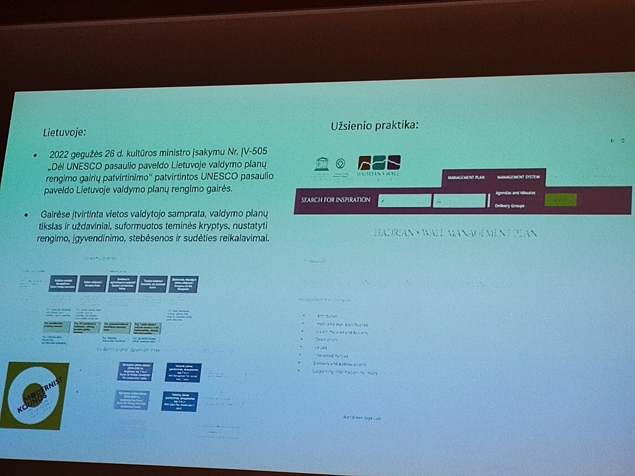 UNESCO  Pasaulio paveldo vietovės valdymo planų rengimas (pristatė Kultūros ministerijos atstovai).
