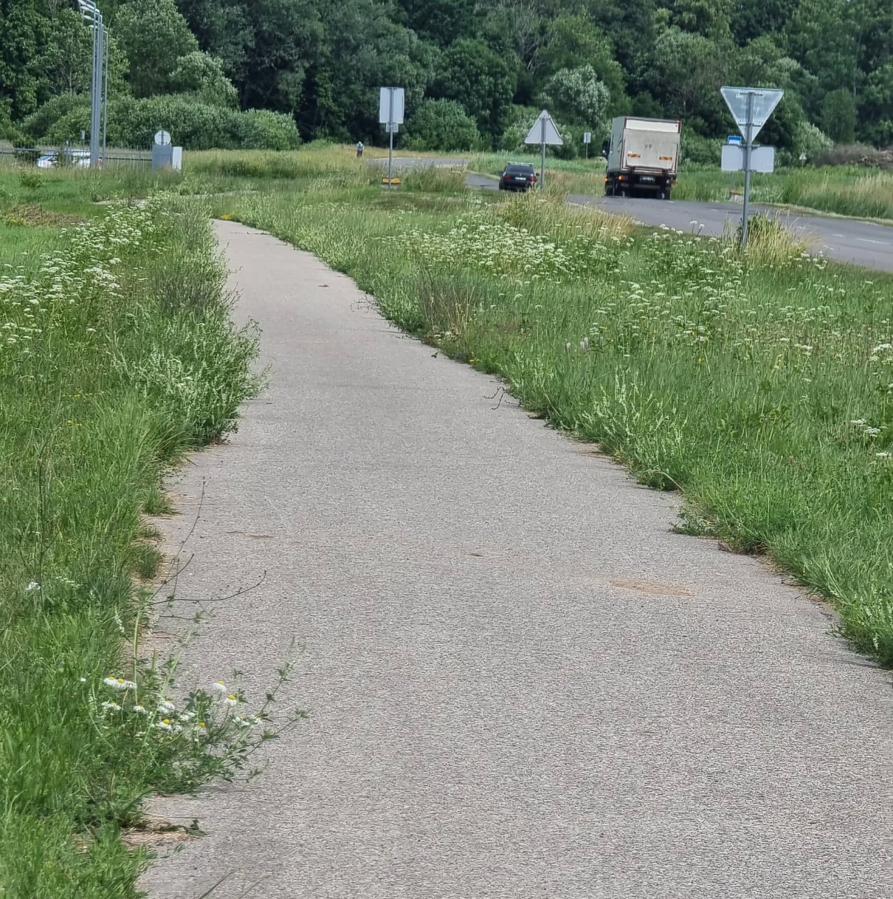 Bet nereikia toli važiuoti. Jei miesto centras dar sutvarkytas, tai kilometrą kitą nuo jo nutolus tvarkos trūksta. Čia ir pėsčiųjų takai žolėmis apaugę, ir kelkraščiai, ir autobusų stotelės. Kai kur tik apie kelio ženklą tesugebėta trimeriu pamojuoti. Bet gi čia ne centras, bus gerai ir taip?!