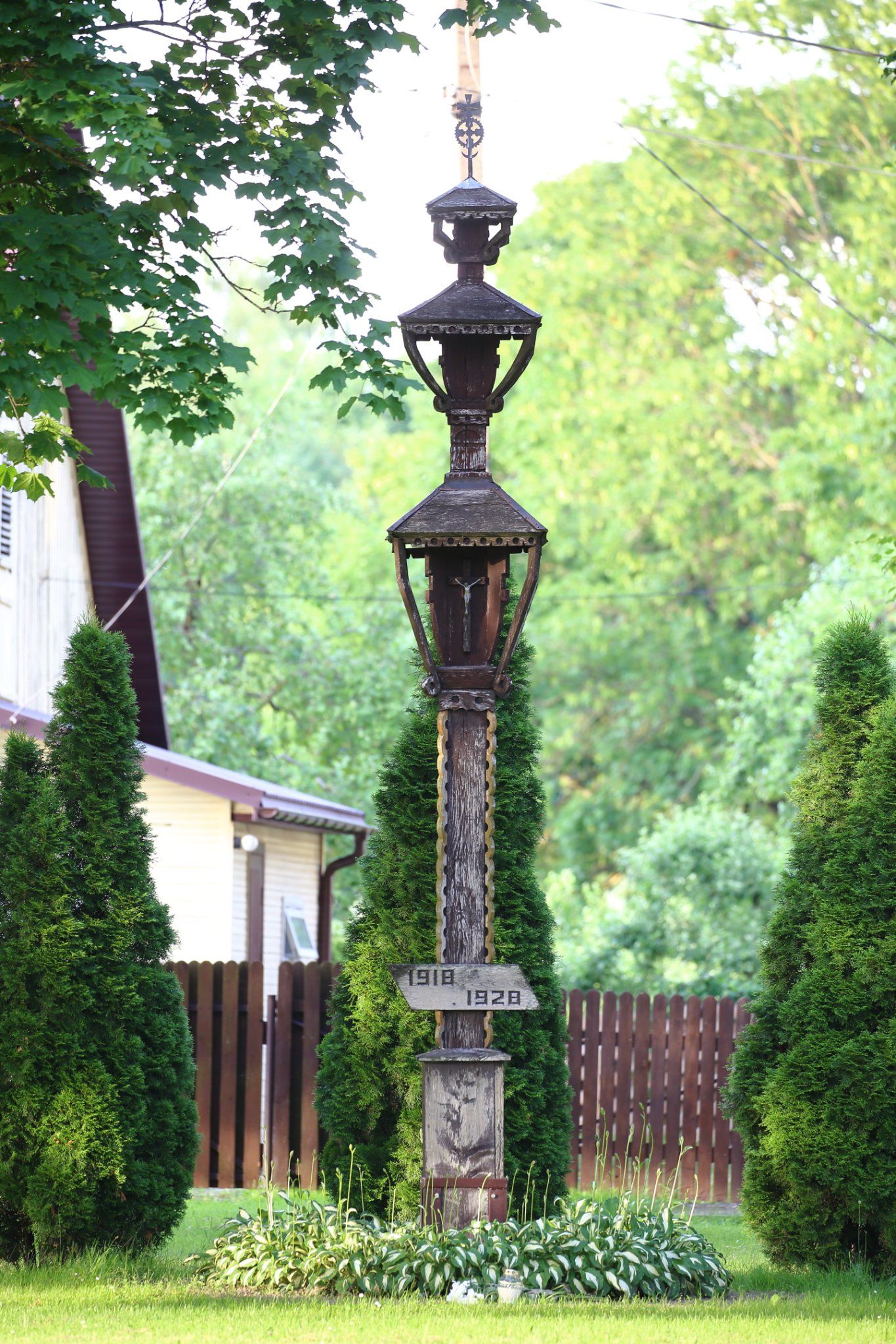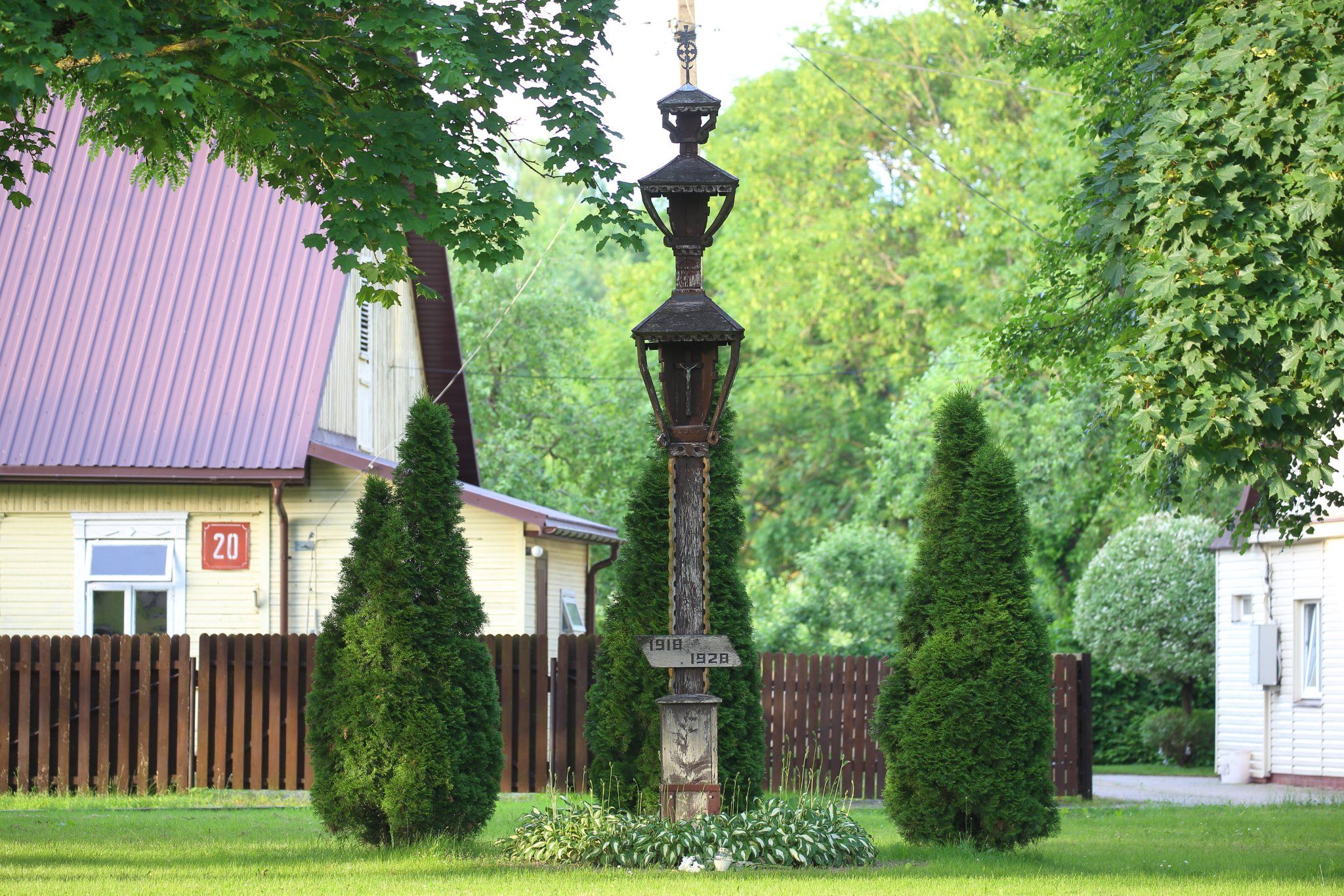 Nepriklausomybės aikštės rytinėje pusėje, tarp medžių stovi kuklus koplytstulpis. Ant jo lakoniškas užrašas: „1918 – 1928“. Tikrai ne kiekvienas žino, kokia proga koplytstulpis pastatytas, o šio koplytstulpio istoriją papasakotų dar mažiau. Pabandykime prisiminti.