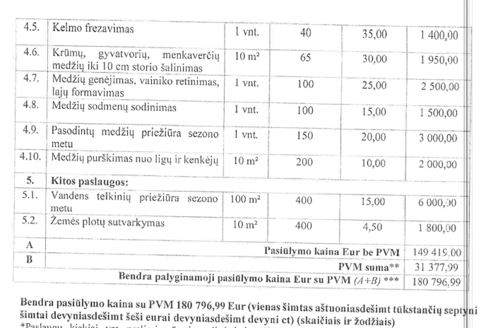 11. Kaip supratau, ši suma mokama maždaug už 7 mėnesius žalių plotų Širvintų mieste tvarkymą.