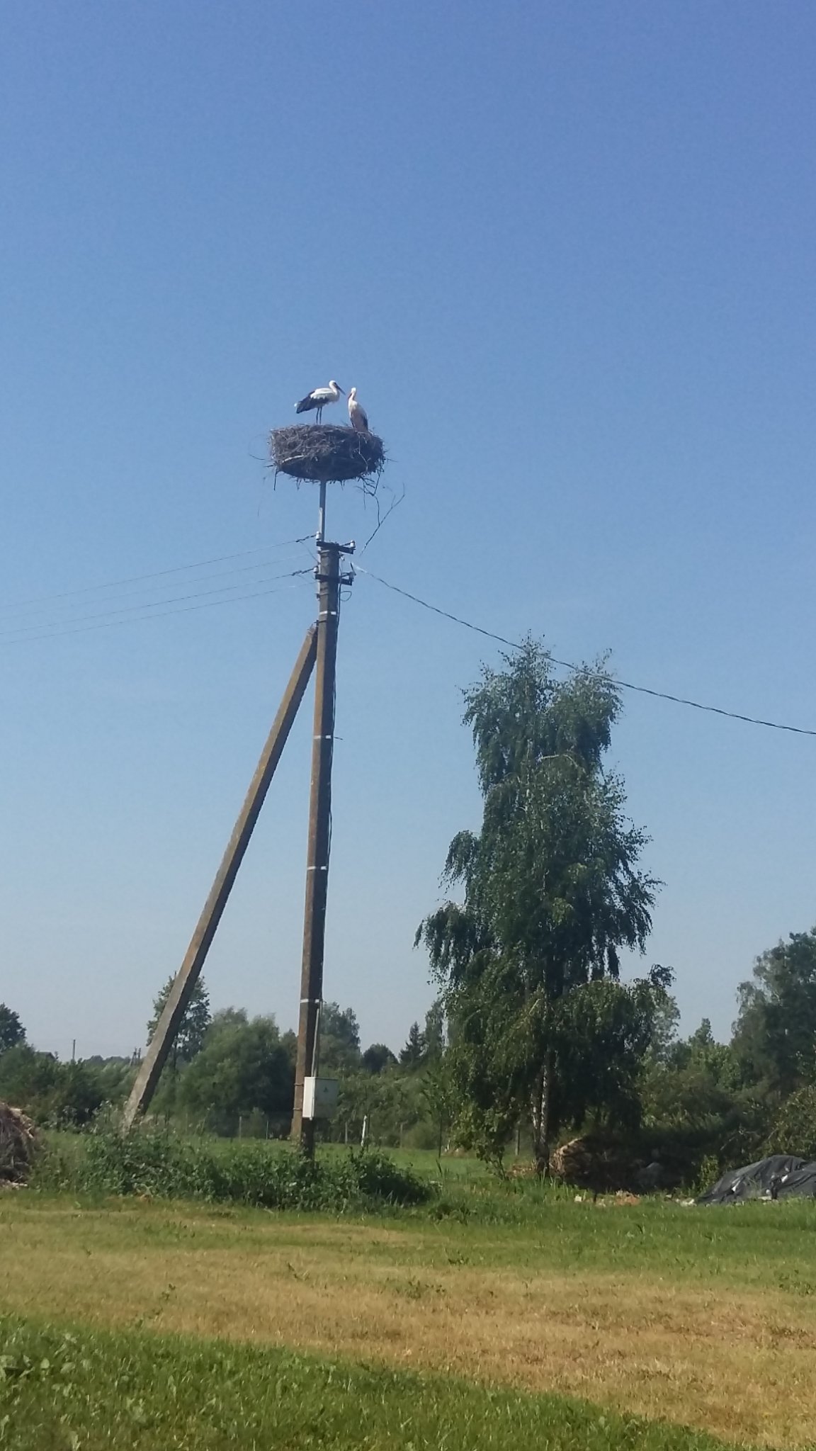 ir besiruošiantys išskristi gandrai – žmogaus palydovai kaimo kraštovaizdyje.
