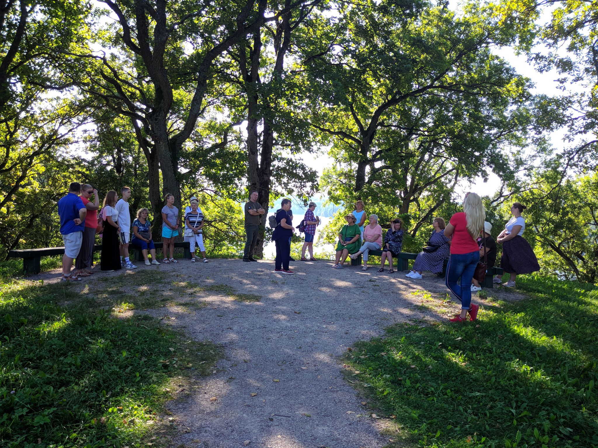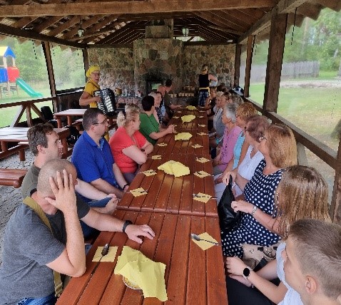 O kaip lankydamasis tokiose ežeringose vietose neparagausi žuvienės. Šeimininkė Irena ne tik ja vaišino, bet dalinosi receptu, vis įpindama į pasakojimą dainų ir muzikos garsus. Jai pritarė ir kelionės dalyviai.