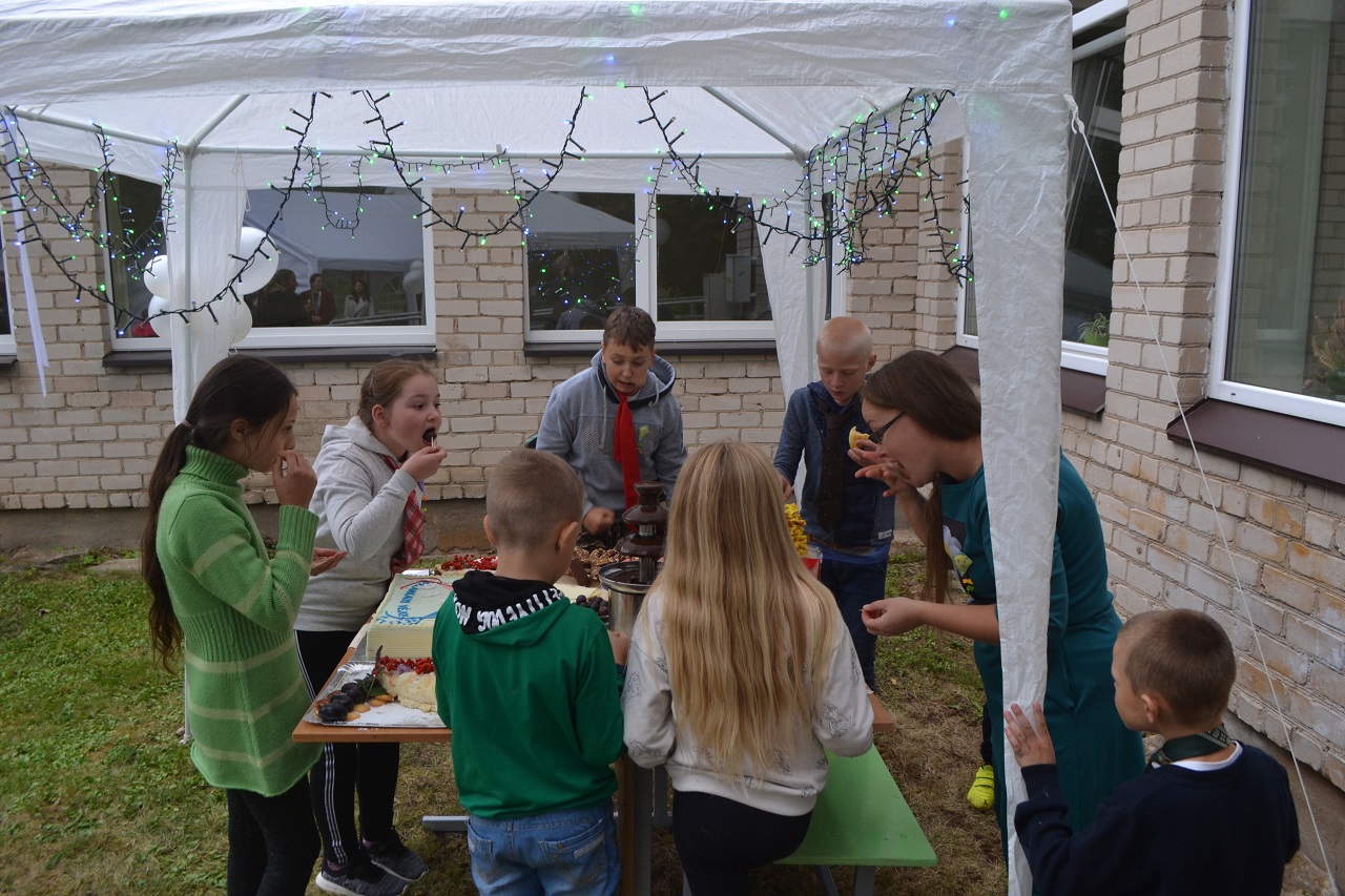 Po visų iškilmingų kalbų ir patalpų pašventinimo bei apžiūrėjimo vyko smagiausia, kad gali būti šventėje. Širvintų dienos centro mergaitės šoko ir žavėjo musninkietes gražiais sijonais, saksofonistas Mantas visus džiugino savo grojimu, dienos centro vaikai, pritariant buvusios aitvarietės Gretos gitarai dainavo dainas. Ir vaikai, kaip tikri savo centro šeimininkai rūpinosi svečiais. Vaišino juos: kas ledus dėdami į indelius, kas kokteilius plakdami, kas tortą pjaustydami…