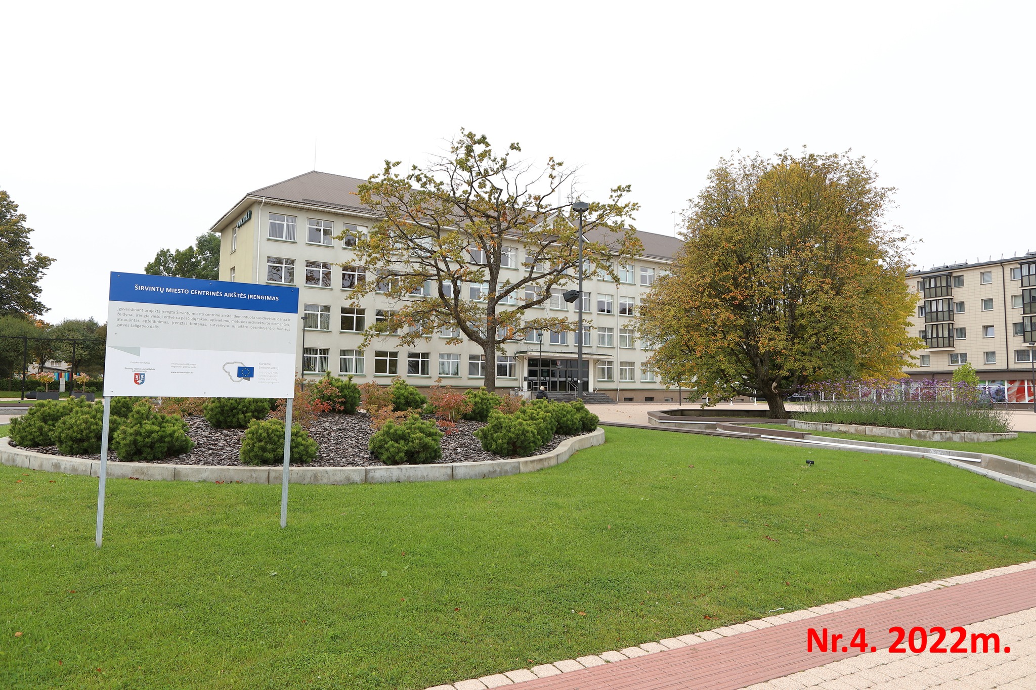 2018m. vasaros pradžioje buvo pristatytas kitas aikštės rekonstrukcijos projektas. Pateiktos vizualizacijos atrodė visai pakenčiamai, ir turint mintyje, kad brandūs pagrindiniai medžiai paliekami, nutariau pritarti. Vis tiek tai juk buvo laimėjimas. Pateikiau pasiūlymus, ir raginau apie ąžuolą palikti bent lajos pločio laisvą vejos plotą. 2018m. rugsėjo 3d. vyko formalus projekto pristatymas, ir kaip dabar matosi, į aptarime dalyvavusių žmonių pasiūlymus nebuvo atsižvelgta.