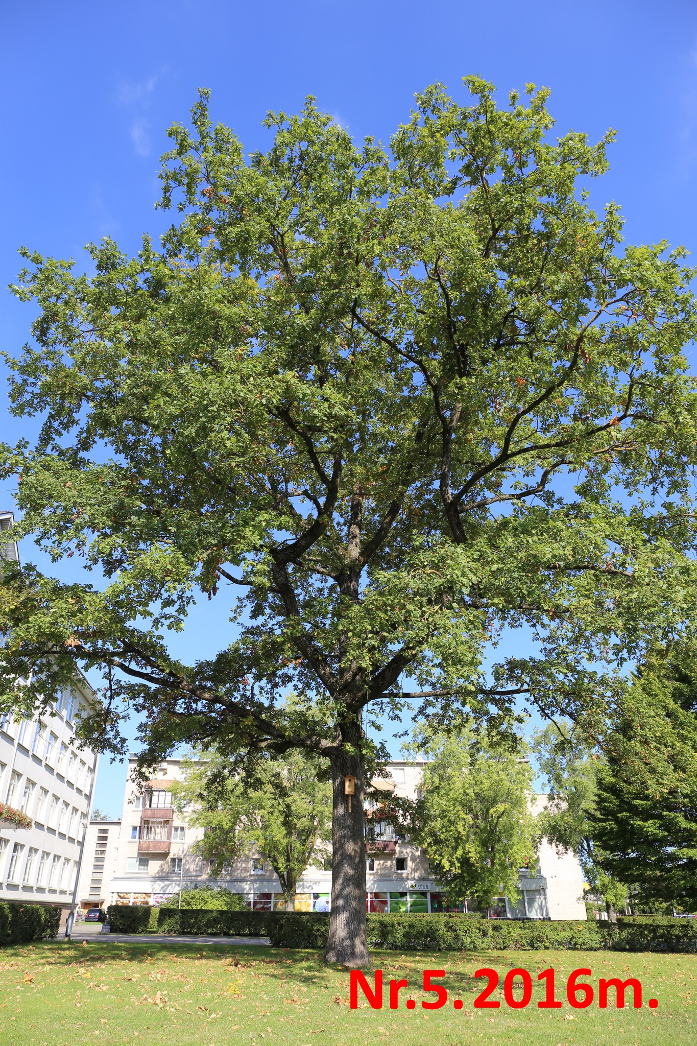 2016m. ąžuolo laja gausi, nors ant žemės šiek tiek lapų. Tokia ji buvo ir 2017, 2018 ir 2019 metais.