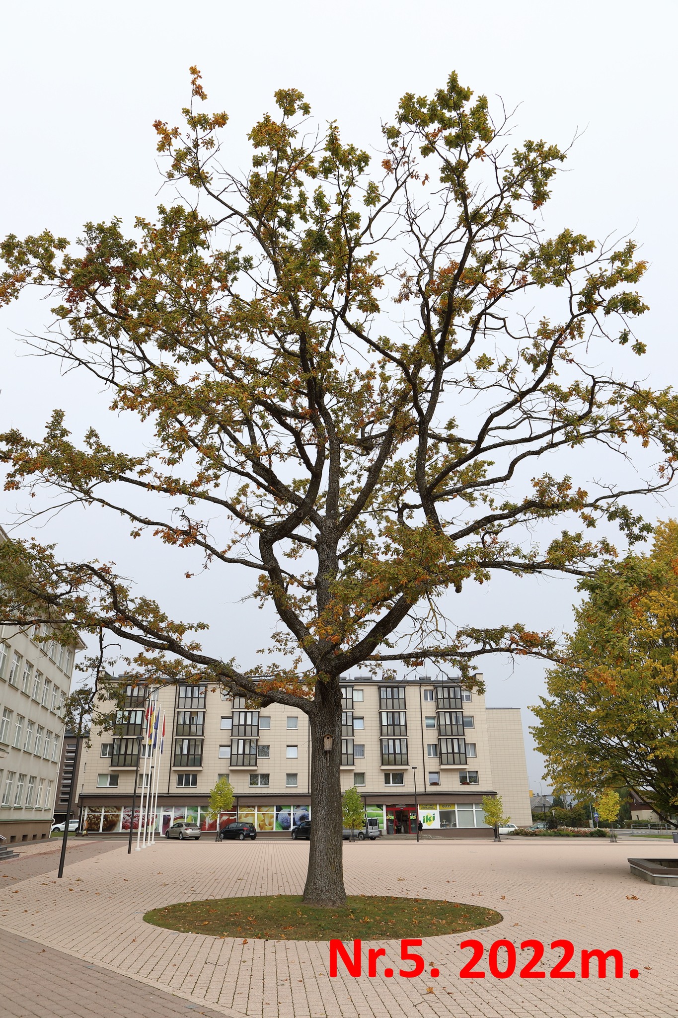 2022m. ąžuolo lajos gal tik pusė likę, ant žemės vienas kitas lapas.
