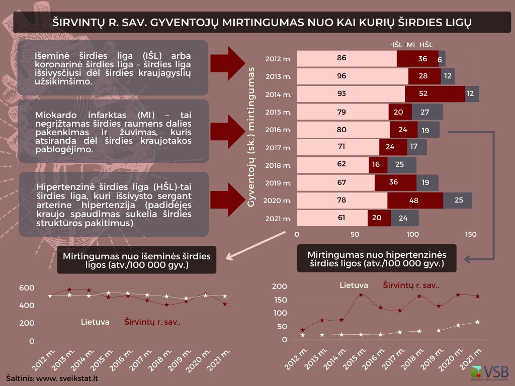 2012-2021 m. kasmet nuo miokardo infarkto mirė po 30 Širvintų r. sav. gyventojų.