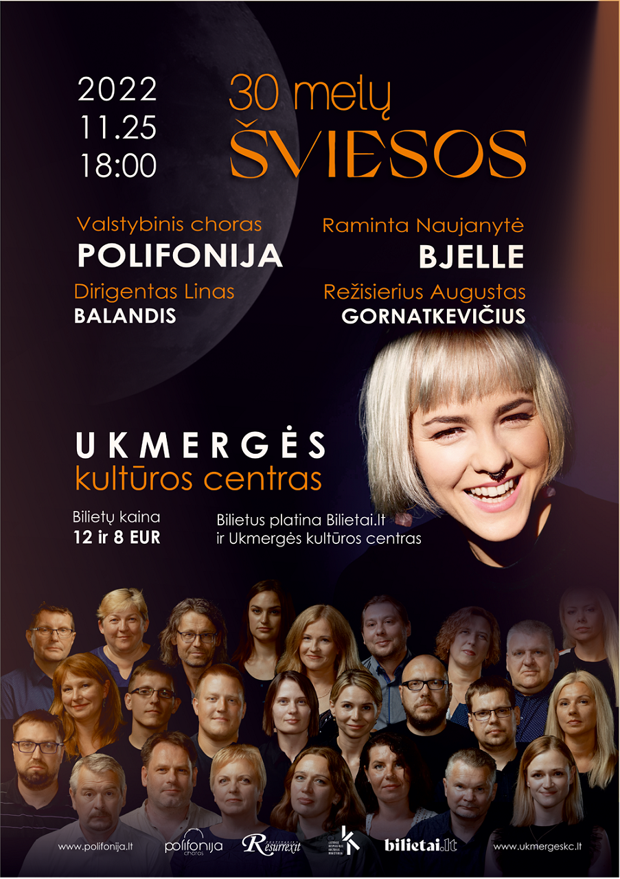 Dar 2020-aisiais ukmergiškius turėjusi pasiekti Šiaulių valstybinio choro „Polifonija“ parengta muzikinė PREMJERA dėl pandemijos, deja, neįvyko. Šiemet, likus lygiai mėnesiui iki Šv. Kalėdų – dovana: dokumentinis koncertas „30 METŲ ŠVIESOS“ grįžta į sceną, kaip festivalio RESURREXIT dalis.
