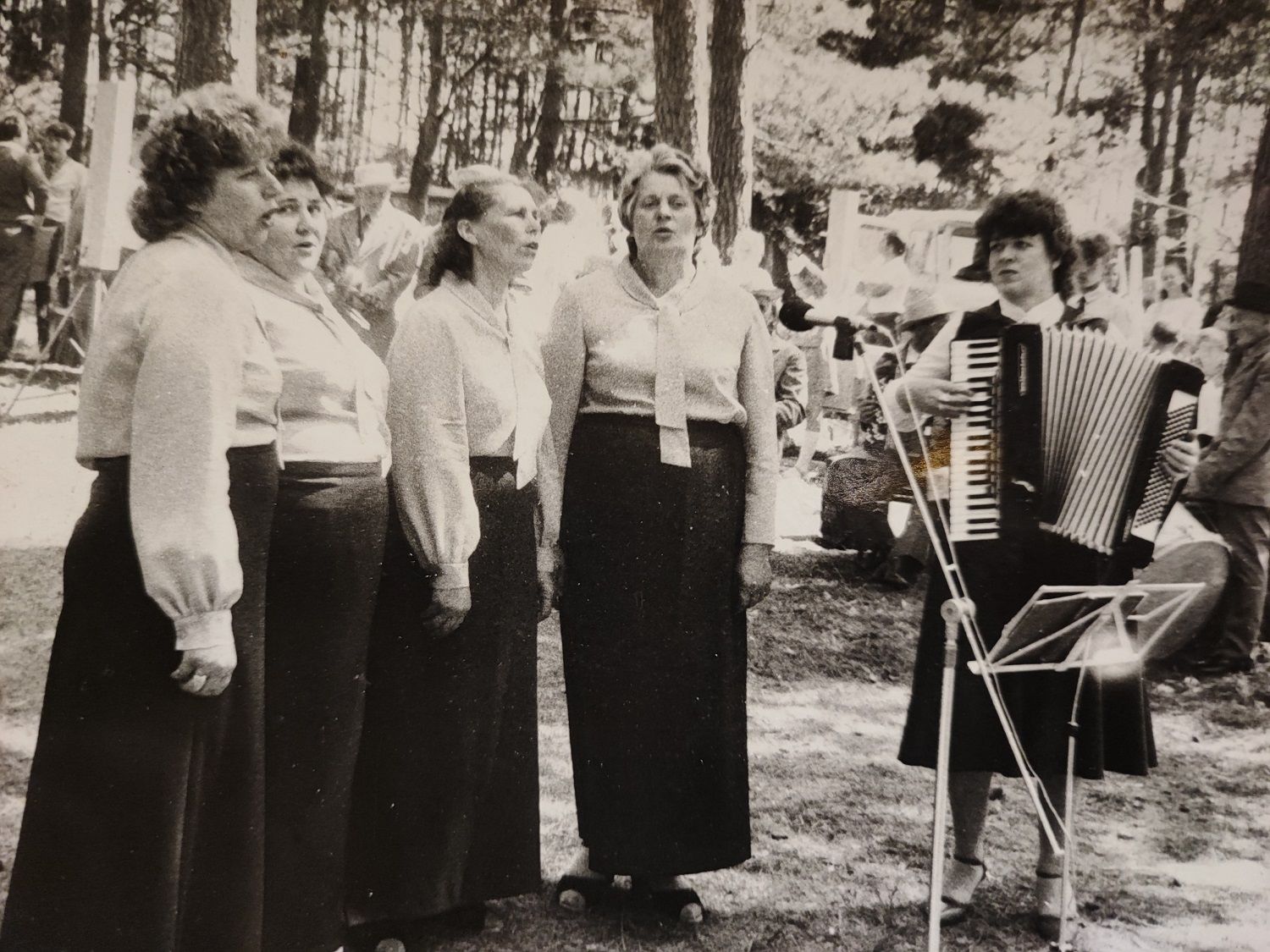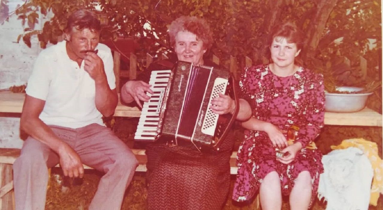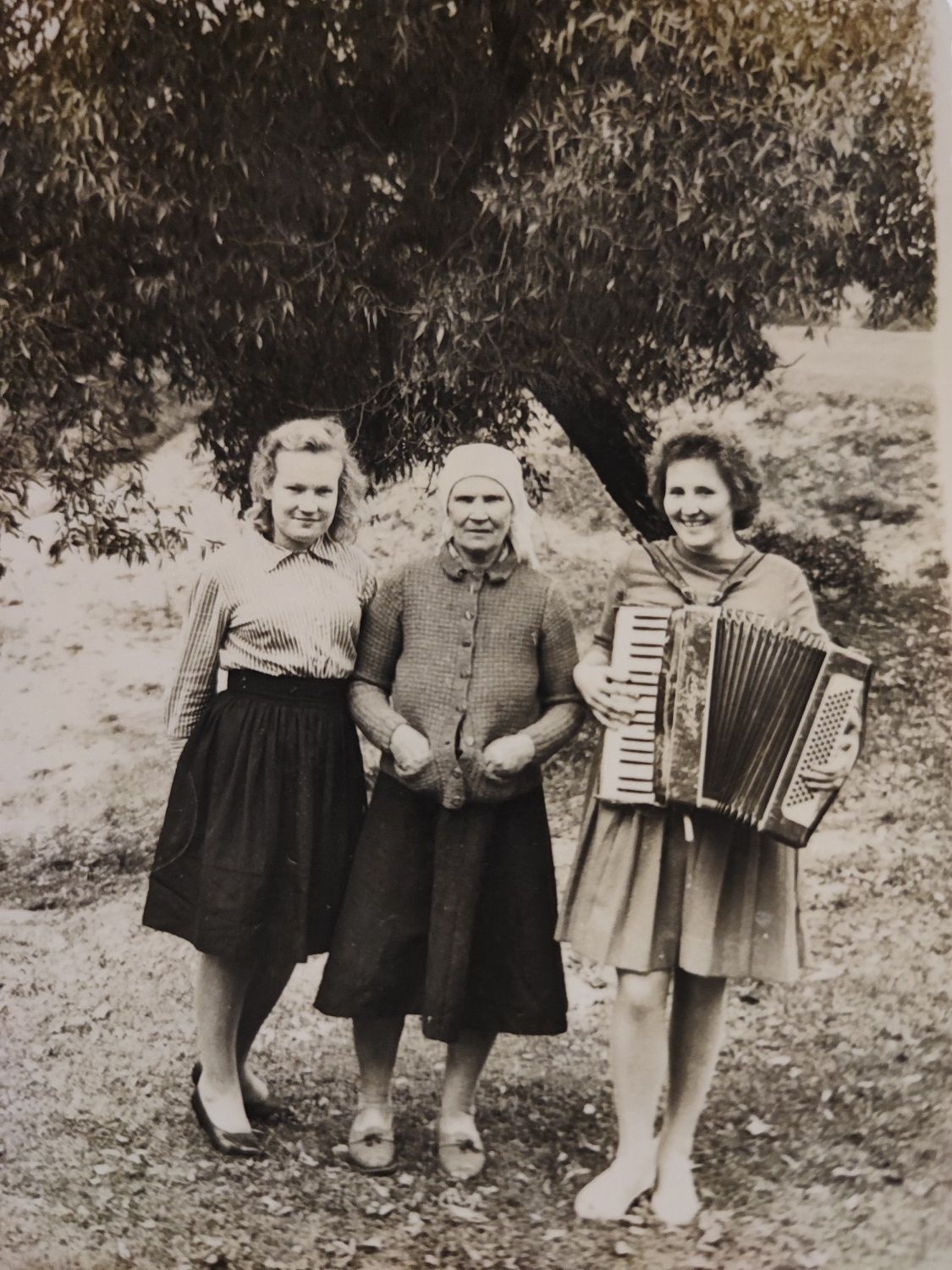 Vėliau ir mažoji sesutė Ramutė pradėjo groti. Tokia kaimynė buvo. Jos brolis atvežė iš armijos 32 bosų akordeoniuką. Juo groti tai nemokėjom ir niekas nepamokino. Aš pati susiradau kas ir kaip. Tada man apie trylika buvo.