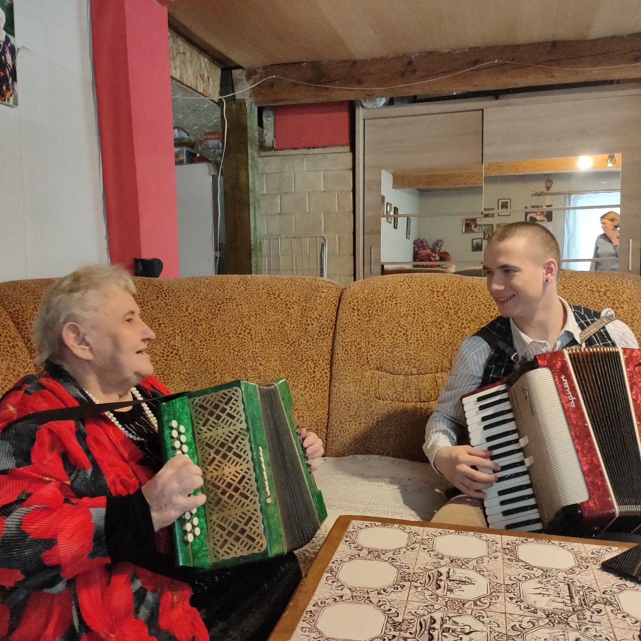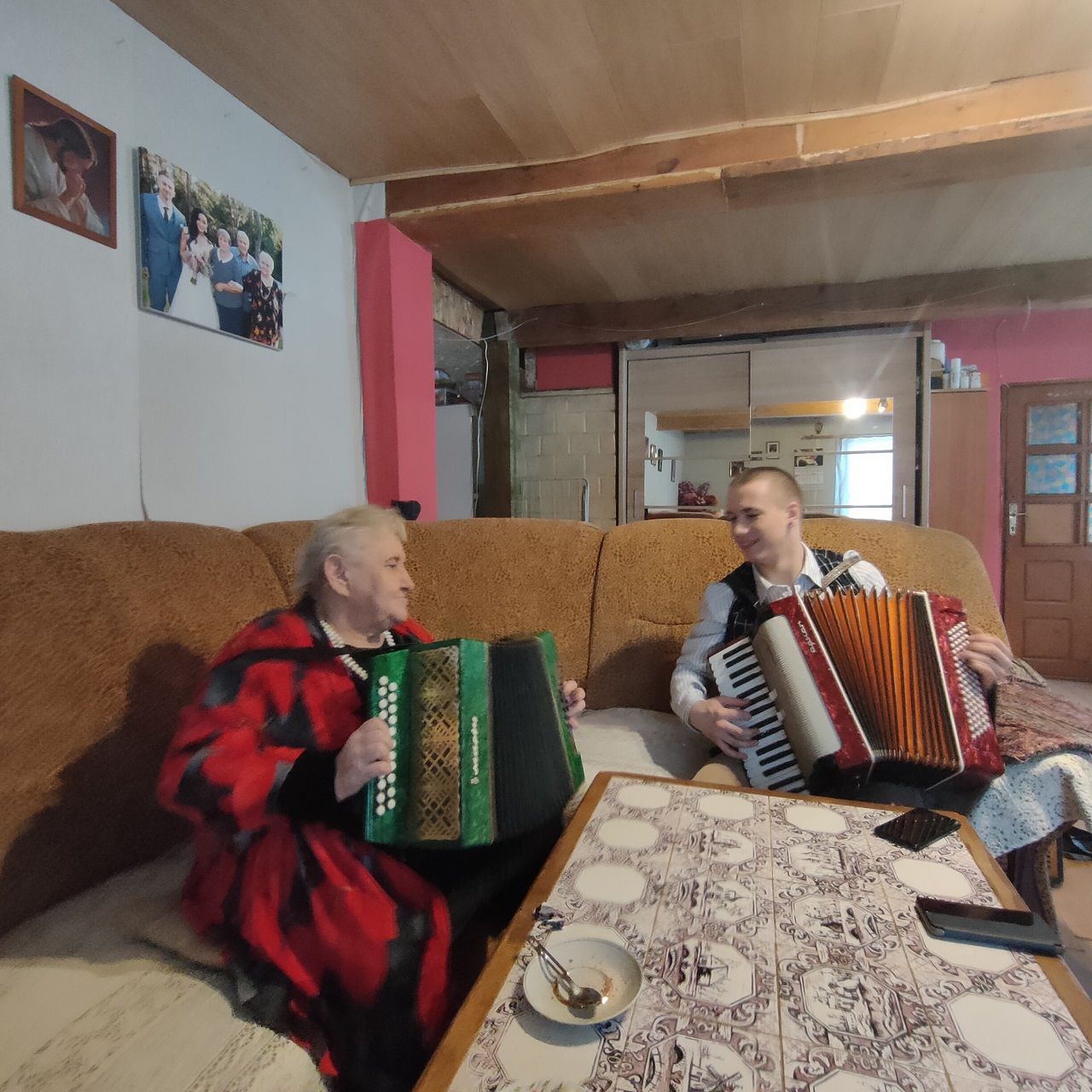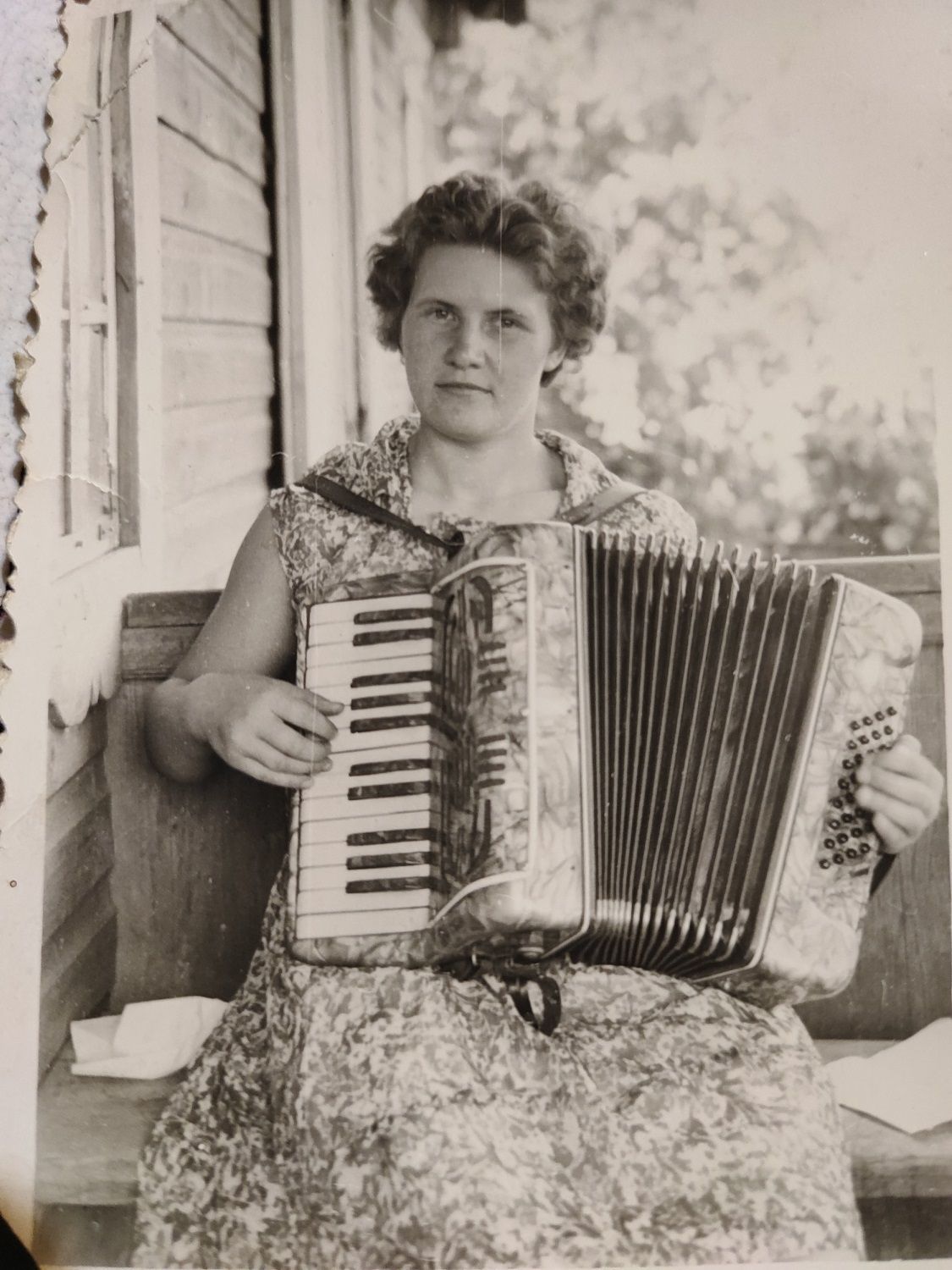 Vėliau ir mažoji sesutė Ramutė pradėjo groti. Tokia kaimynė buvo. Jos brolis atvežė iš armijos 32 bosų akordeoniuką. Juo groti tai nemokėjom ir niekas nepamokino. Aš pati susiradau kas ir kaip. Tada man apie trylika buvo.