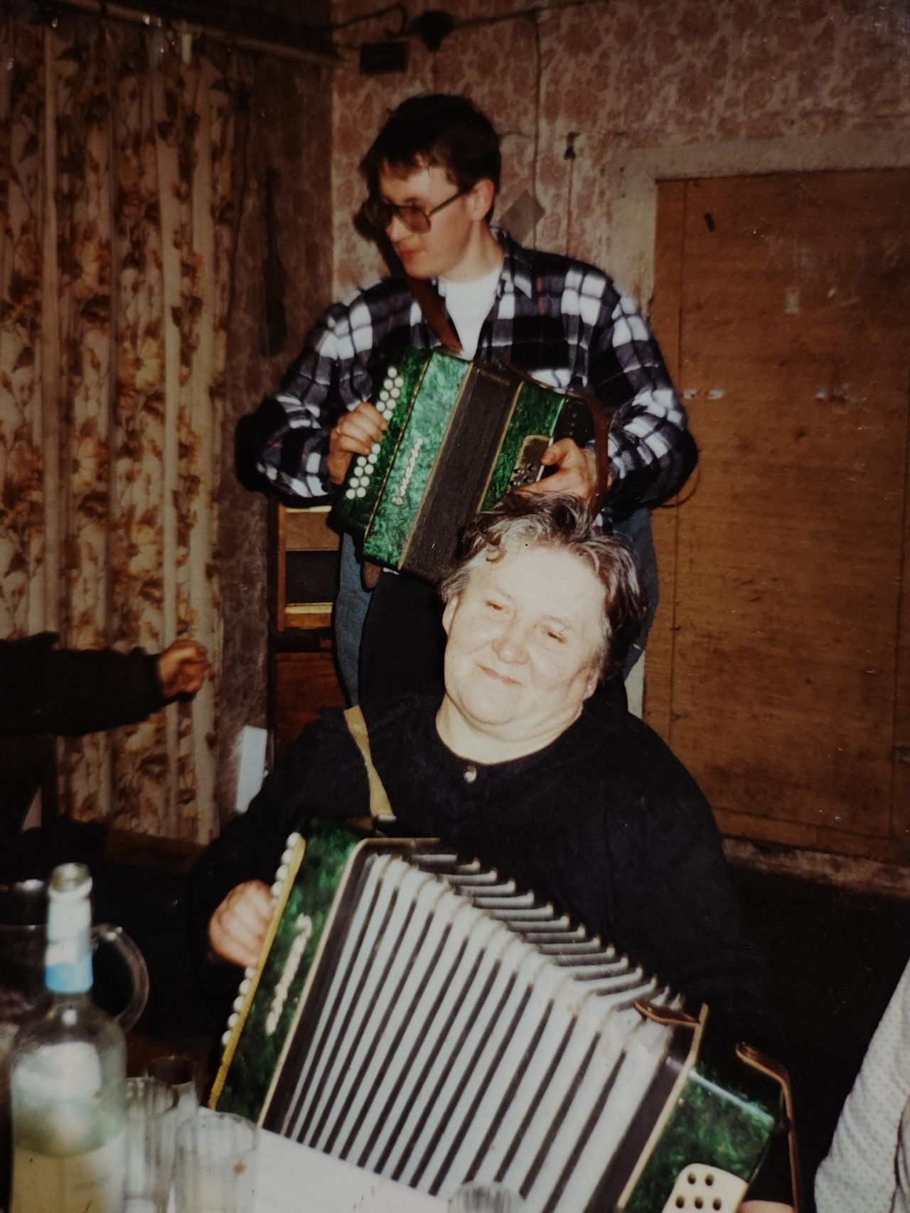 Mano sesuo, aš ir ta draugė – mes trise grojom. Dar mano brolis ir jos brolis. Tai mes ir grodavom vakaruškose. Visi pasikeisdami. Aš taip norėjau groti, kad man groti buvo įdomiau, negu šokti. Sunku apsakyti tą jausmą, kas nesupranta, bet aš labai norėjau groti.
