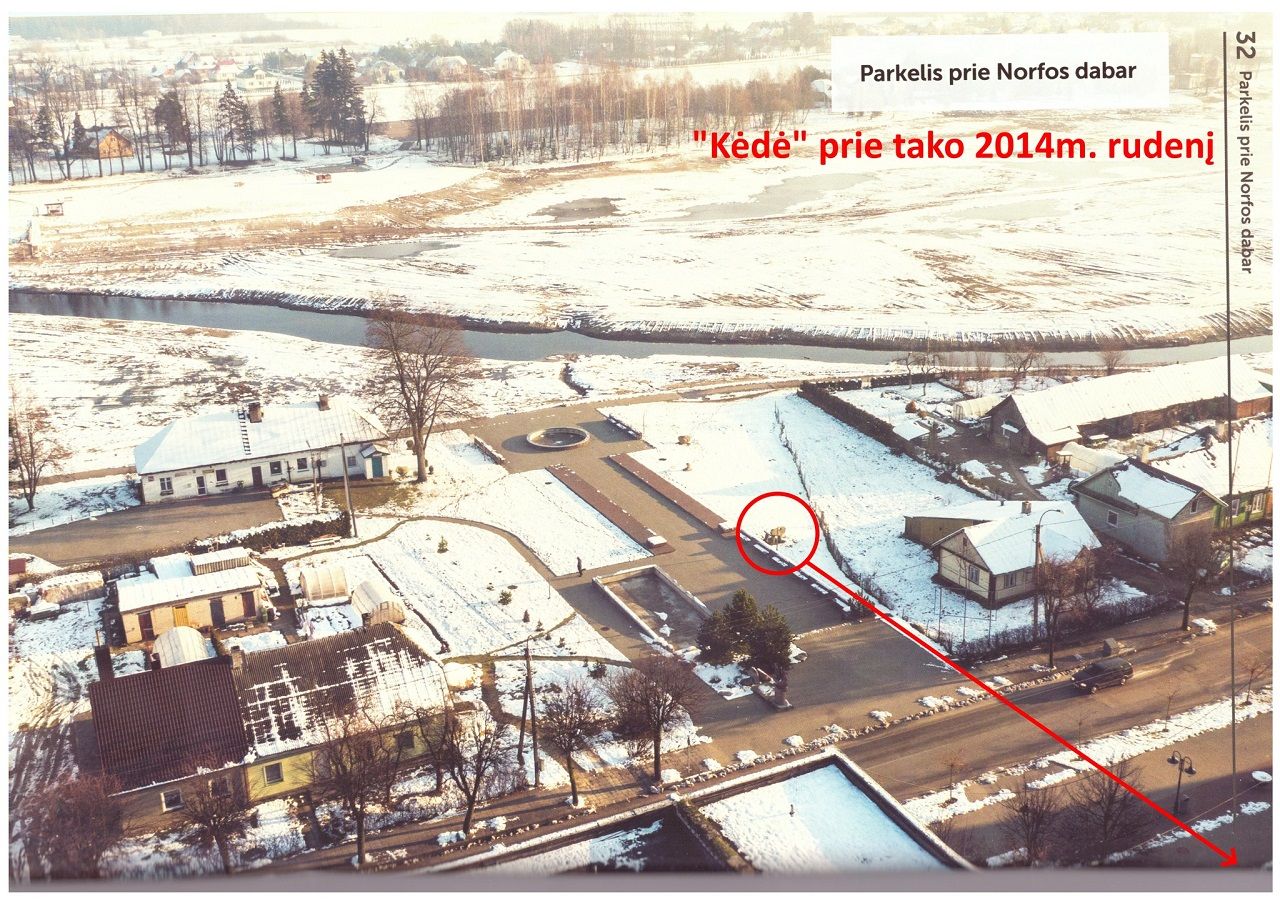 Ir tuo metu buvo perkelta ne tik akmens skulptūra, bet ir buvo išardyta metalinė tvora „sietka“, skyrusi merės Živilės žemę nuo miesto žemės. Tiksliai neprisimenu, kad lygtai 2016 metų vasarą, geodezininkai – matininkai bėgiojo po merės Živilės sklypą ir šalia esančią miestui priklausančią pievą, ir tai kalė, tai traukė ir vėl kalė raudonus riboženklius.