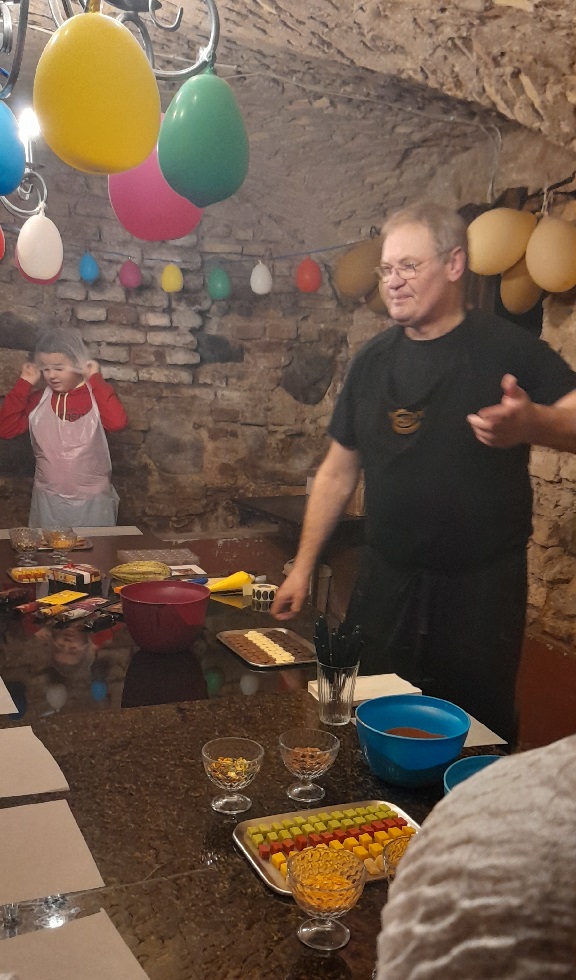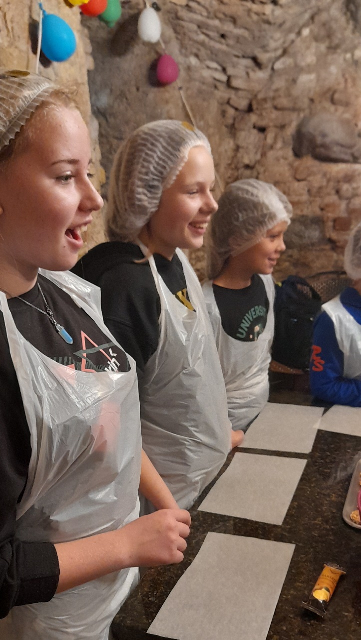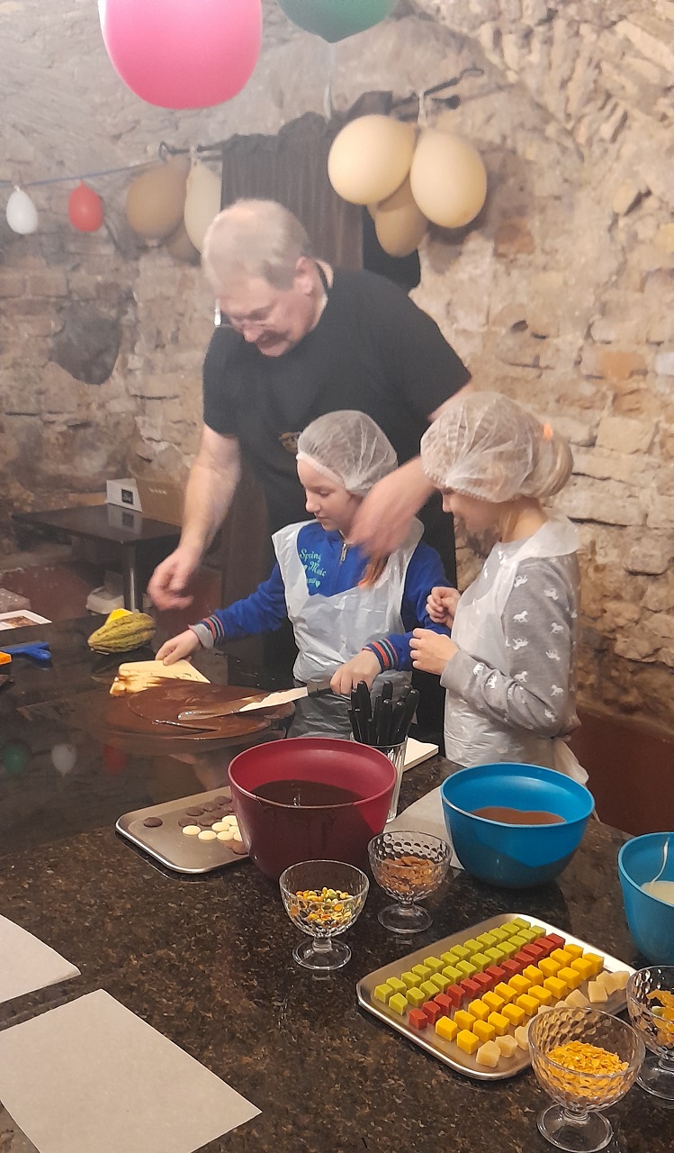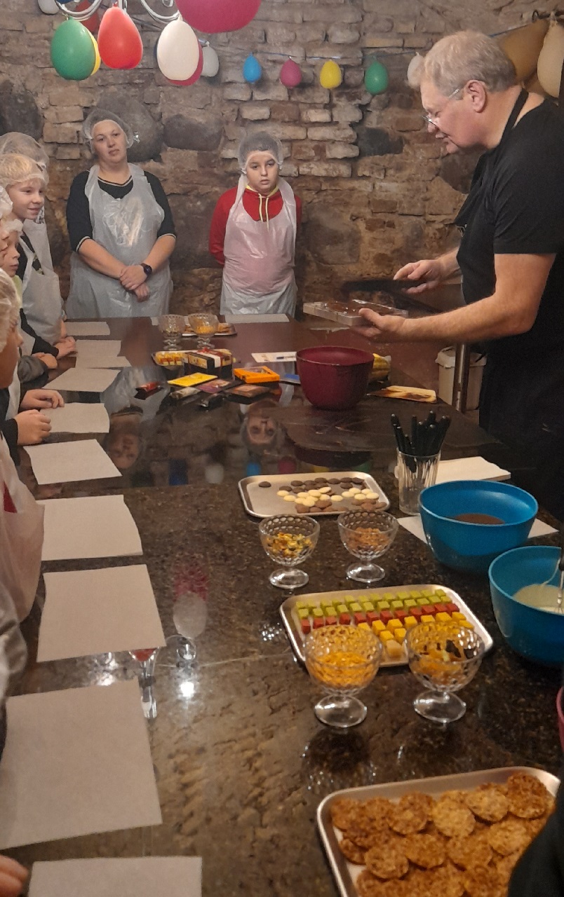 Šiltą sekmadienio dieną Bagaslaviškio vaikų dienos centro vaikai išsiruošė į kelionę Vilniuje, kur jų laukė UAB „AJ produktai “ kavinėje edukacinė programa „Šokolado gamyba“. Pats bendrovės „AJ produktai“ įkūrėjas vaikams pasakojo kaip yra gaminamas šokoladas. Vaikai edukatoriaus pasakojimo metu turėjo atsakinėti į užduotus klausimus. Atsakę į jį teisingai – gaudavo šokoladuką ar dėžutę saldainių. Po supažindinimo, vaikučių laukė šokoladinių saldainių gamyba. Vaikai patys gaminosi šokoladinius saldainius, juos dekoravo kaip sugebėjo. Patys gražiausiai dekoruoti saldainiai buvo apdovanoti pagrindiniu prizu. Pagamintus savo rankomis saldainius, vaikai pasiėmė su savimi ir parsivežė į namus, kad galėtų parodyti ką pasigamino tėveliams.