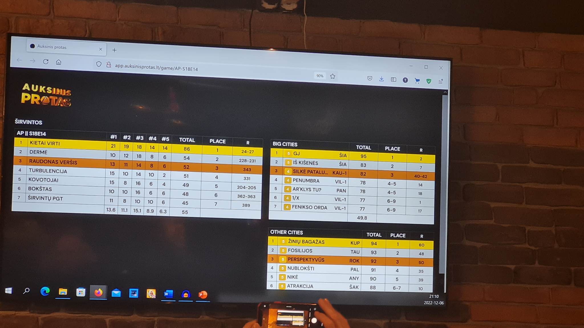 Taigi „Auksinio proto“ gyvų žaidimų pertrauka skelbiama iki Naujų metų sausio 10 d. Bet per tą laiką nenorintiems atostogauti protams dar tikrai bus ką nuveikti: morališkai palaikyti KIETAI VIRTUS finale, pajudinti rankytes, kojytės ir smegenis 90-ųjų diskotekoje, dalyvauti iŠmintiesakmuo.lt iššūkyje, atstovauti ŠIRVINTOS UNITED pas Kazį, etc…