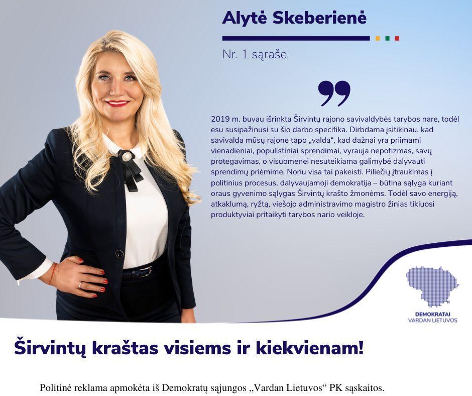 Politinė reklama bus apmokėta iš “Demokratų sąjungos “Vardan Lietuvos” rinkiminės kampanijos sąskaitos pagal sutartį ŠS 22-04. Užsakymas ŠS 23-07-12