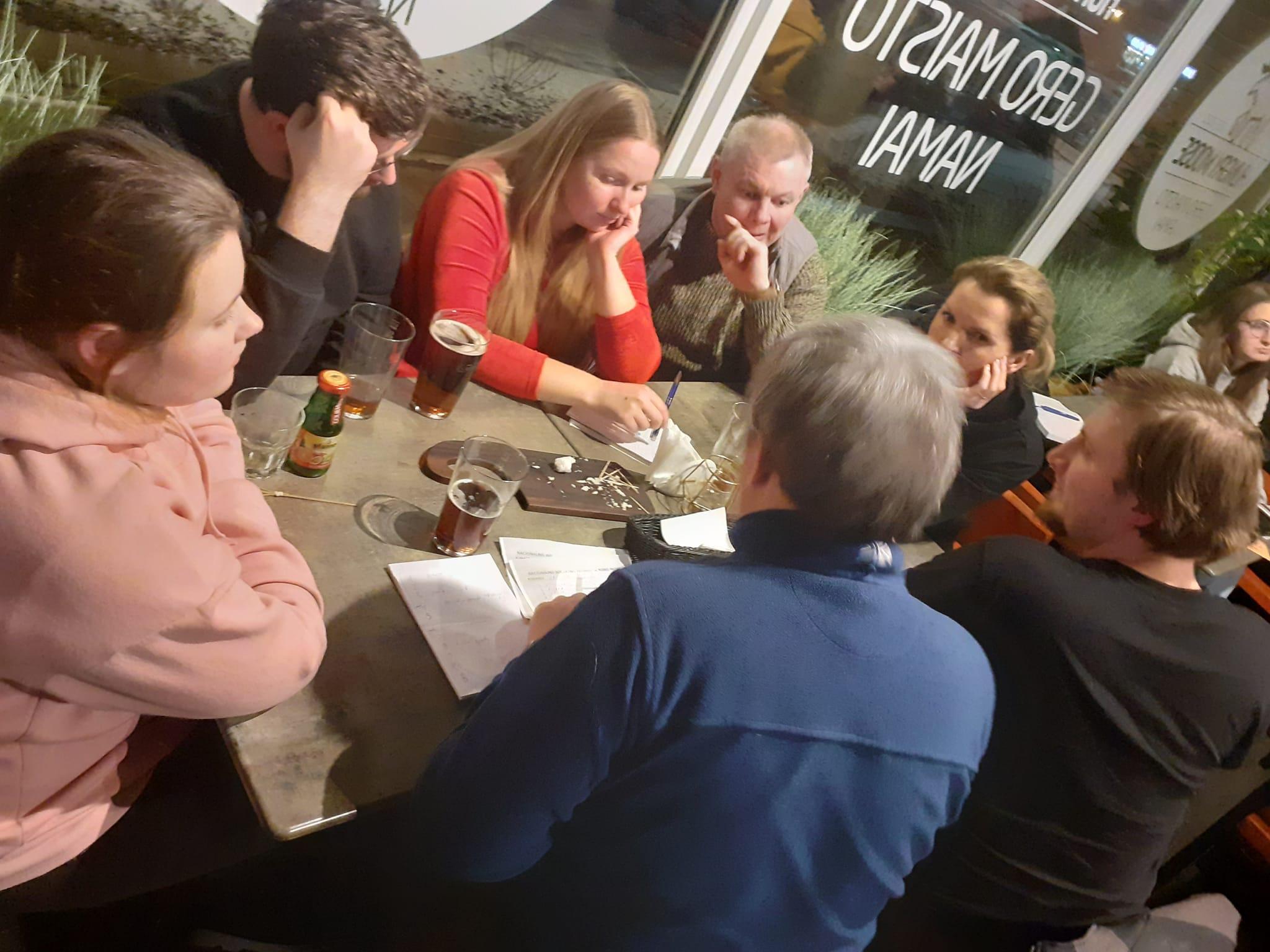 OK, tada jau prasidėjo žaidimas, kuriame viskas vyko, kaip visada, azartiškai ir permainingai. O sekėsi taip: Surinkę 98 taškus (II rezultatas Lietuvoje!) nugalėjo ir Saldva. Skoniai ir prieskoniai nuostabiu prizu džiaugėsi kažkur jau matyti naujokai KAS TIE JIE! Antri liko puikiai žaidę KOVOTOJAI, kuriems atiteko Draustukas dovana. Pradėjusi nuo lentelės dugno, bet stipriai finišavusi DERMĖ ne tik užsikabino bronzos medalius, bet džaugėsi ir Mokas IT prizu. Praėjusio sezono „stebuklas” ŠIRVINTŲ PGT nenustoja maloniai stebinti – 62 taškai ir IV vieta. Penktas liko RAUDONAS VERŠIS, nuo kurio nedaug atsiliko TURBULENCIJA. Septinti liko labai neblogai žaidę dar vieni naujokai: ŽINOJAU ŠITĄ, kuriems, deja, keli turai tiesiog „nepaėjo”. Mano nuomone, ši komandą šį sezoną dar nustebins. Aštuntą vietą užėmęs BOKŠTAS surinko 40 taškų, ir šis rezultatas tik parodo kaip stipriai nuo pat pirmo žaidimo sužaidė komandos ir diviziono lygis smarkiai kyla aukštyn. Belieka tikėtis, kad tai bus ne išimtis o tendencija.