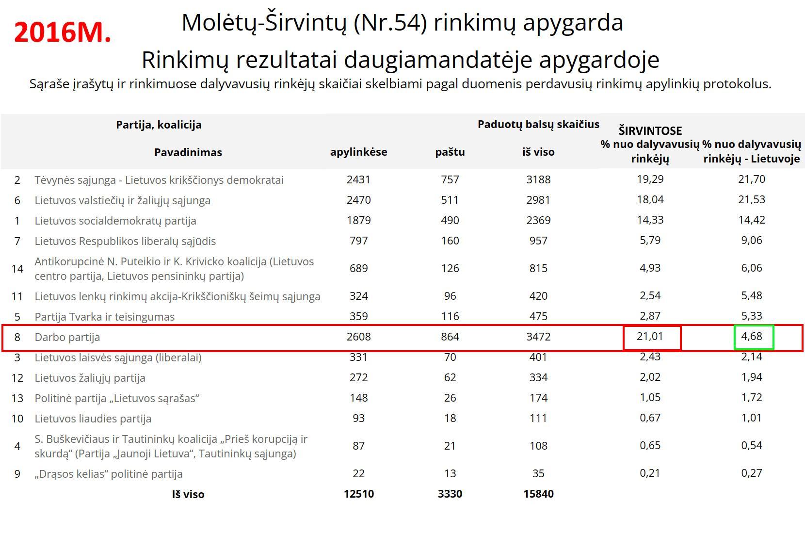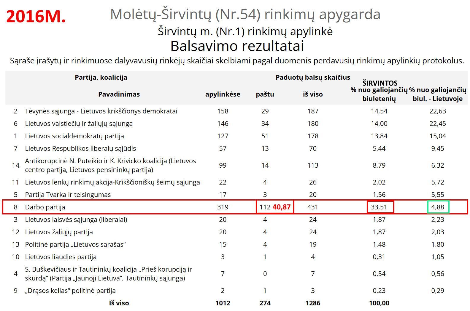 Nr.2. Širvintų m. (Nr.1) rinkimų apylinkė. Ką ten juokingi 4,68 %. Čia Darbo partija sulaukė 33,51%.