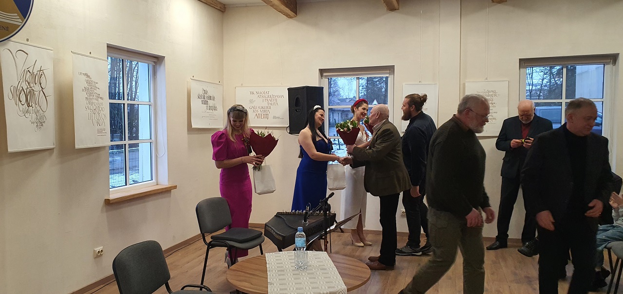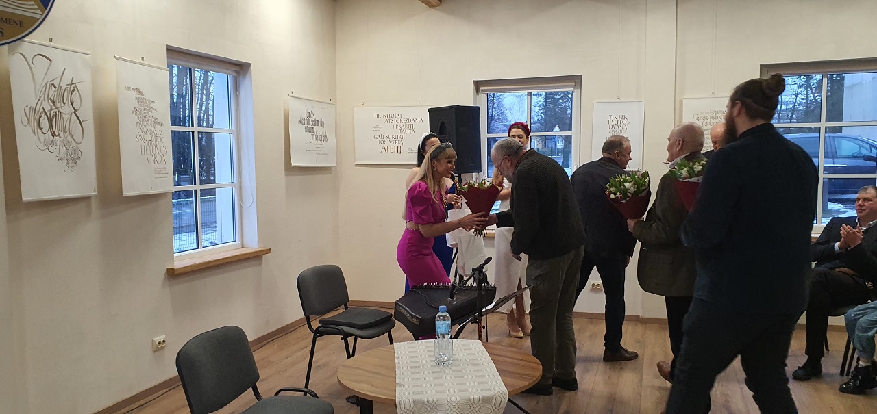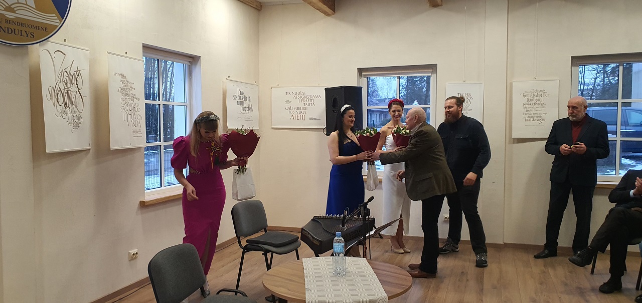 O prieš pradėdamas aptarinėti konkrečius plakatus, jų šriftą ir turinį, profesorius nudžiugino žiūrovus sugrodamas lūpine armonikėle – egzotišku šiems laikams instrumentu. Po aptarimo –  gėlės ir sveikinimai profesoriui – ir ne iš bet ko, o iš buvusių studentų – pasirodo ir Musninkuose jų esama. Gal ir nenuostabu, juk A. Gurskas dar nuo 1969 m. Vilniaus dailės akademijos dėstytojas, būtent jis laikytinas lietuvių kaligrafijos mokyklos pradininku, išugdęs būrį mokinių – šrifto meno propaguotojų. Profesorius yra parengęs vadovėlį „Kaligrafijos  ir šrifto pagrindai“,  kurio originalumas ir vertė sulaukė pripažinimo ir užsienyje, todėl 2010 m. išleistas ir anglų kalba. Už vaisingą kūrybą 2020 m. profesorius A. Gurskas apdovanotas Lietuvos vyriausybės kultūros ir meno premija. Pasakytina ir tai, kad menininkas ne tik mūsų kaimynas (jo gimtinė – Deltuva) bet ir nusipelnęs mūsų rajonui – būtent A. Gurskas yra Širvintų herbo autorius.